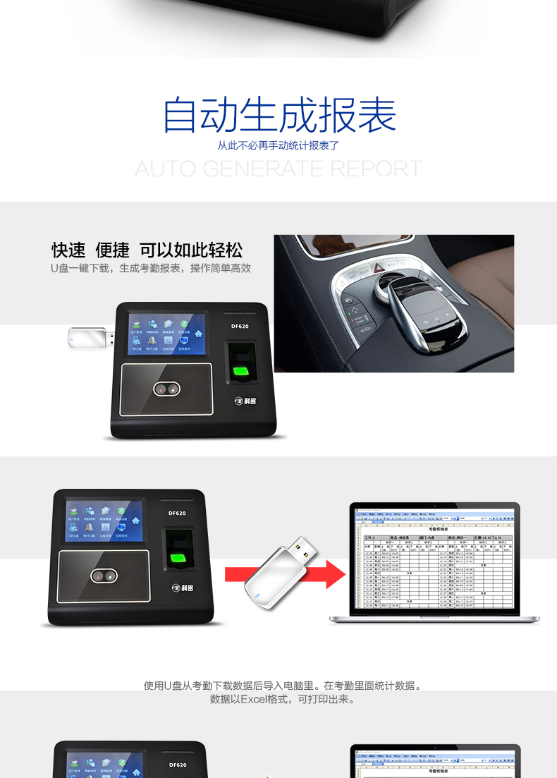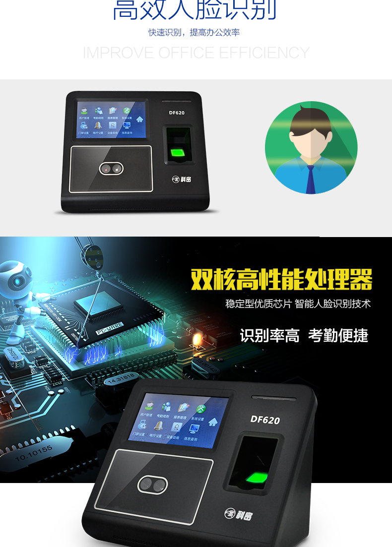 科密/Comet 人脸考勤机 人脸面部识别指纹密码打卡机 DF620