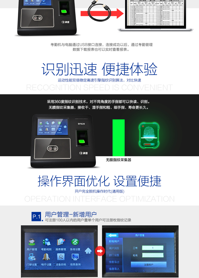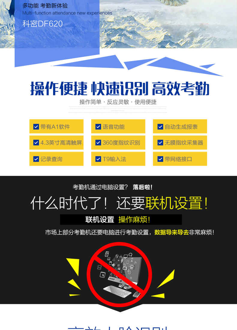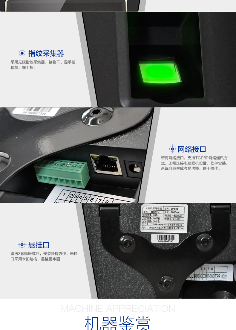 商品名称:科密/Comet 人脸考勤机 人脸面部识别指纹密码打卡机 DF620