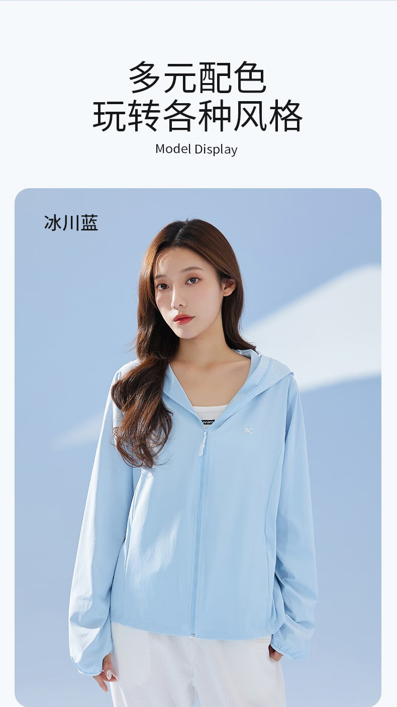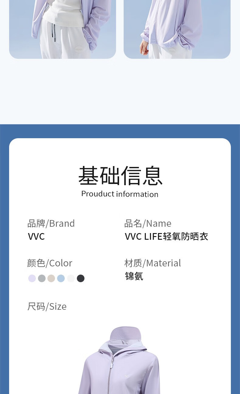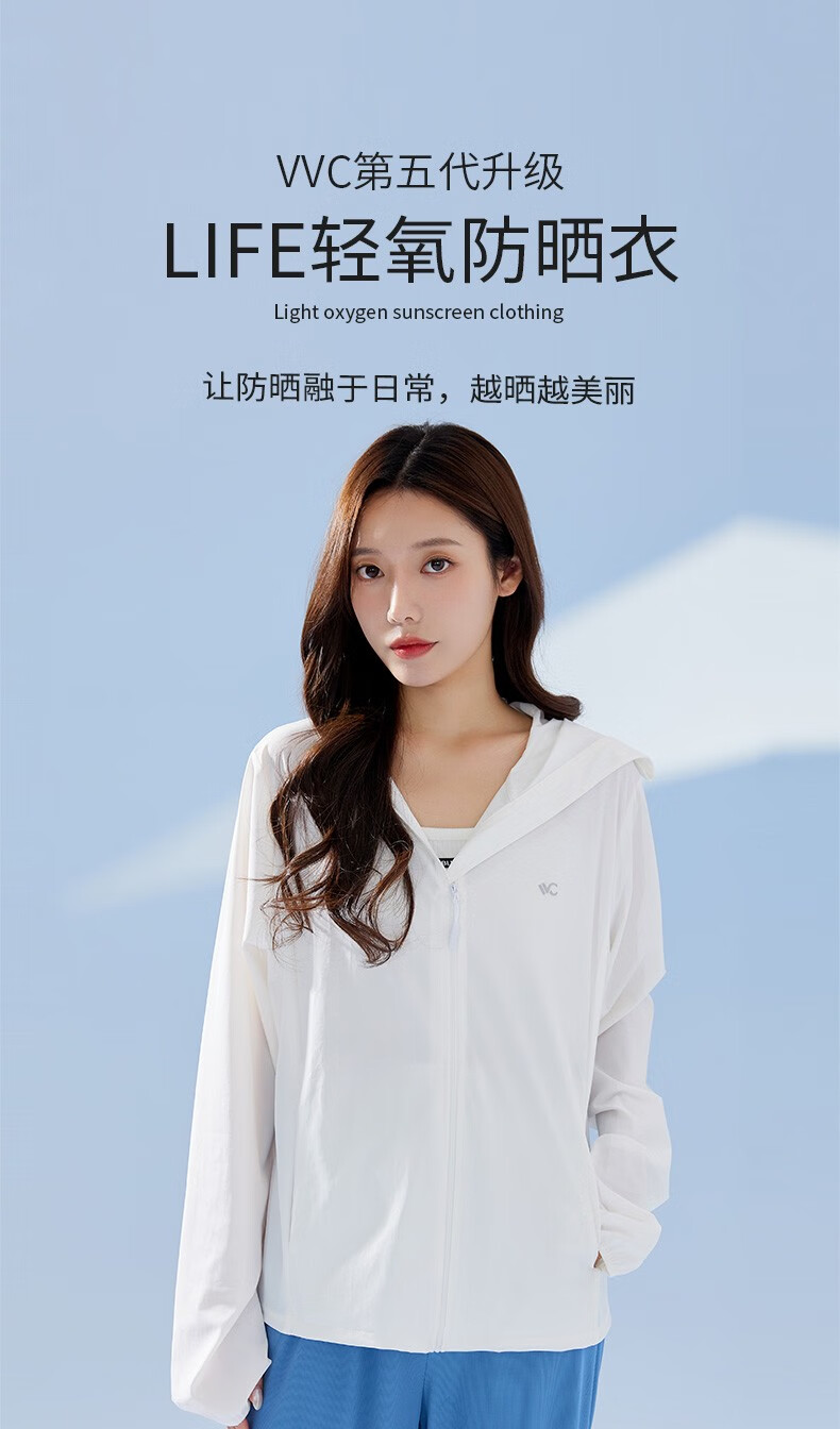 商品名称:VVC LIFE轻氧防晒衣VTA3S157简约白/丁香紫/冰川蓝/奶油米/浅灰色/深灰色/时尚黑/
