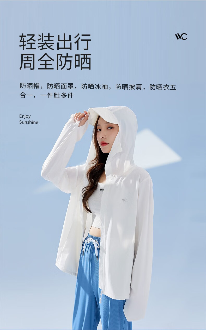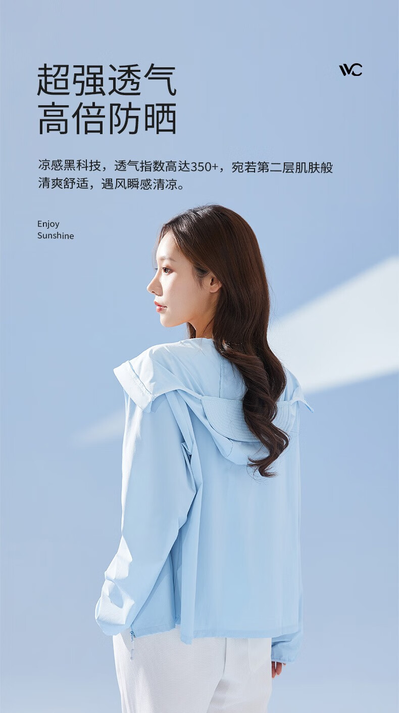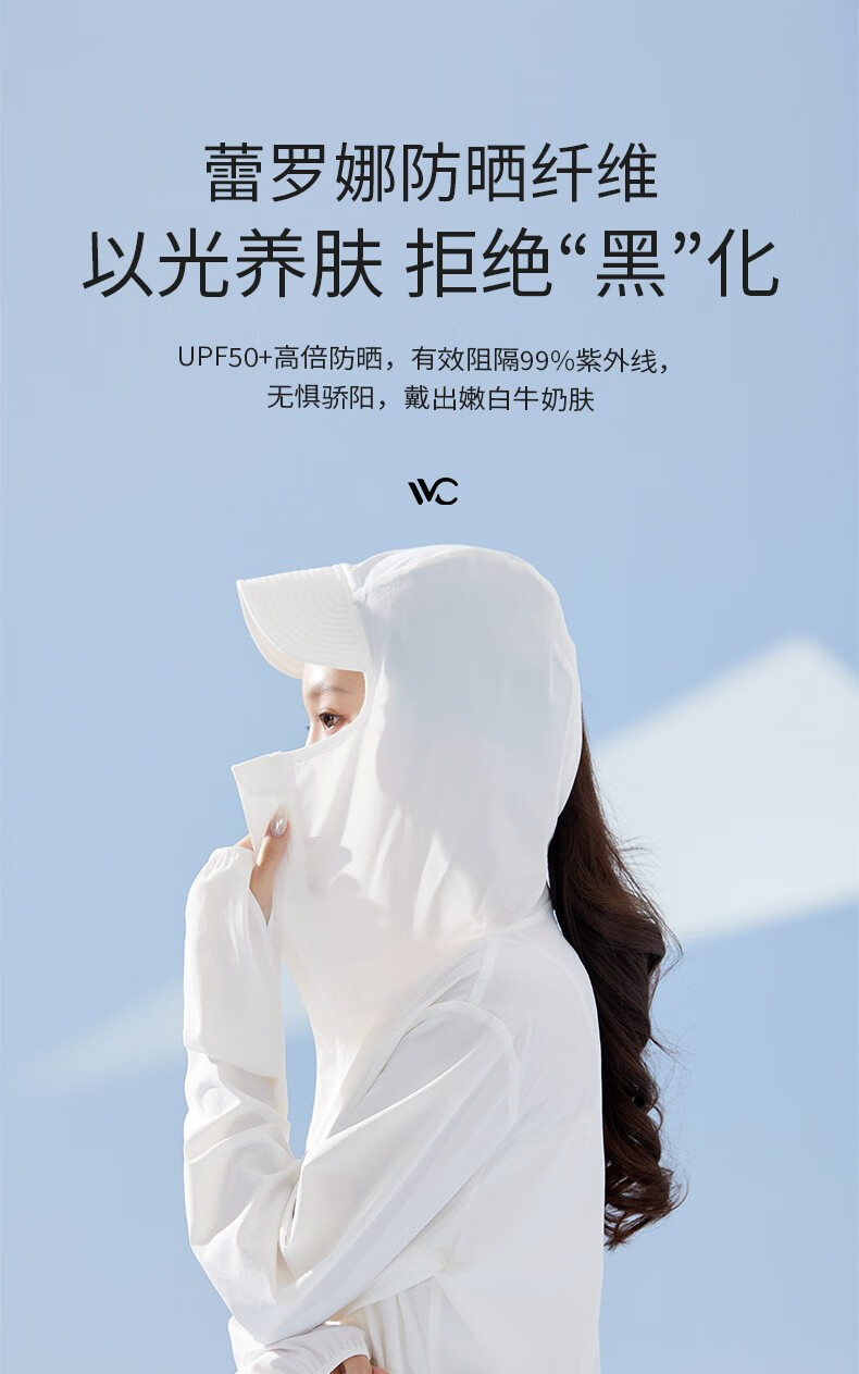 商品名称:VVC LIFE轻氧防晒衣VTA3S157简约白/丁香紫/冰川蓝/奶油米/浅灰色/深灰色/时尚黑/