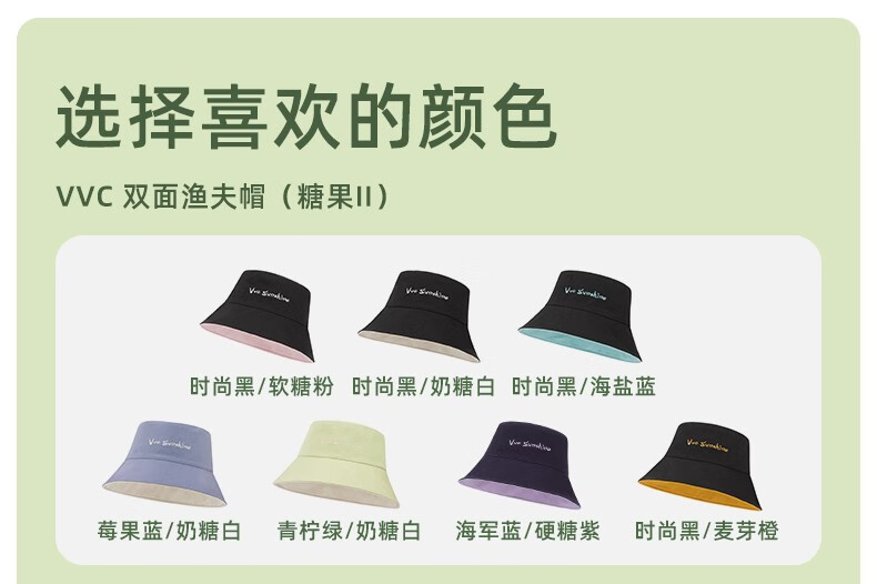 商品名称:VV VGM34811双面渔夫帽(糖果II) (蓝/白)/(绿 /白)(黑/白)(黑/橙)(黑/粉)(黑/蓝)(蓝/紫)