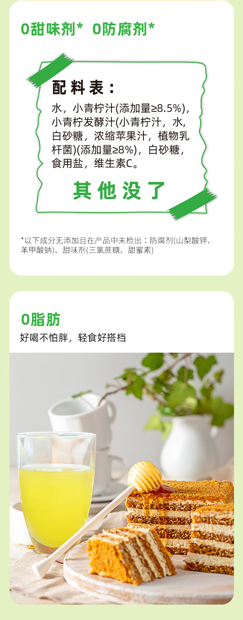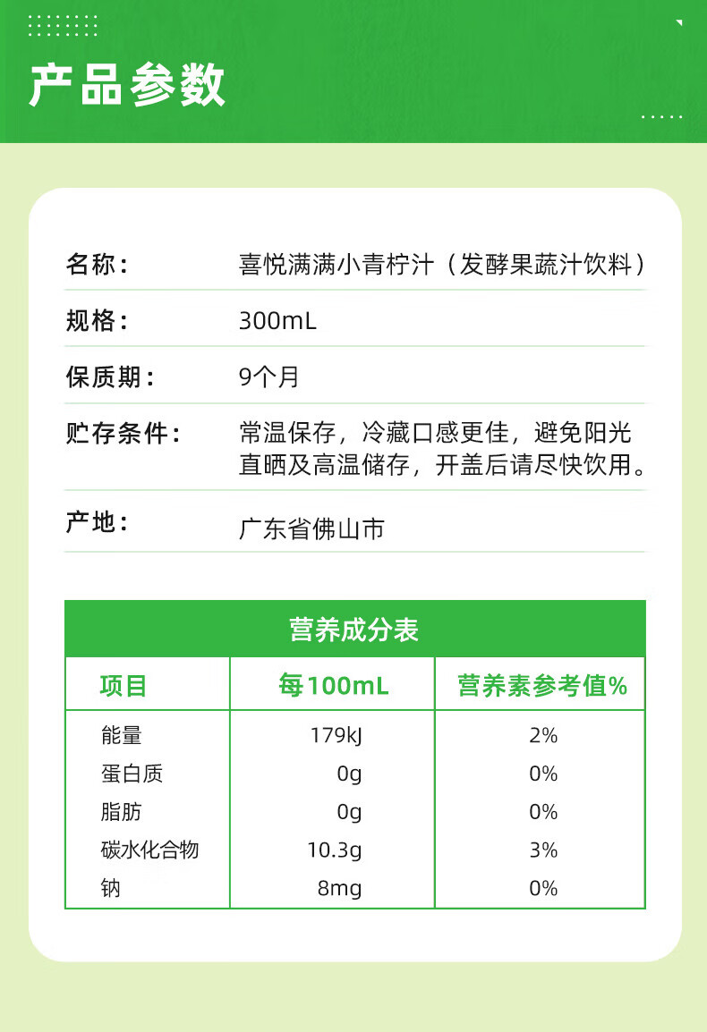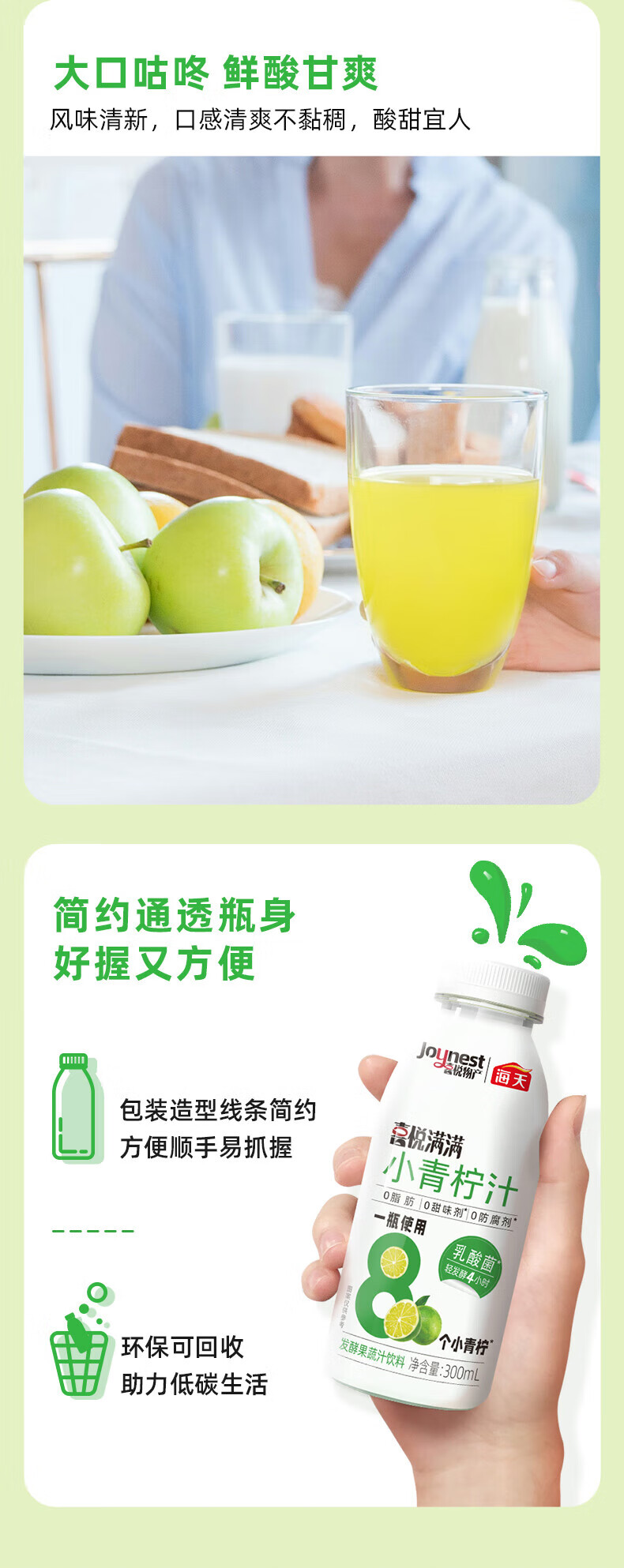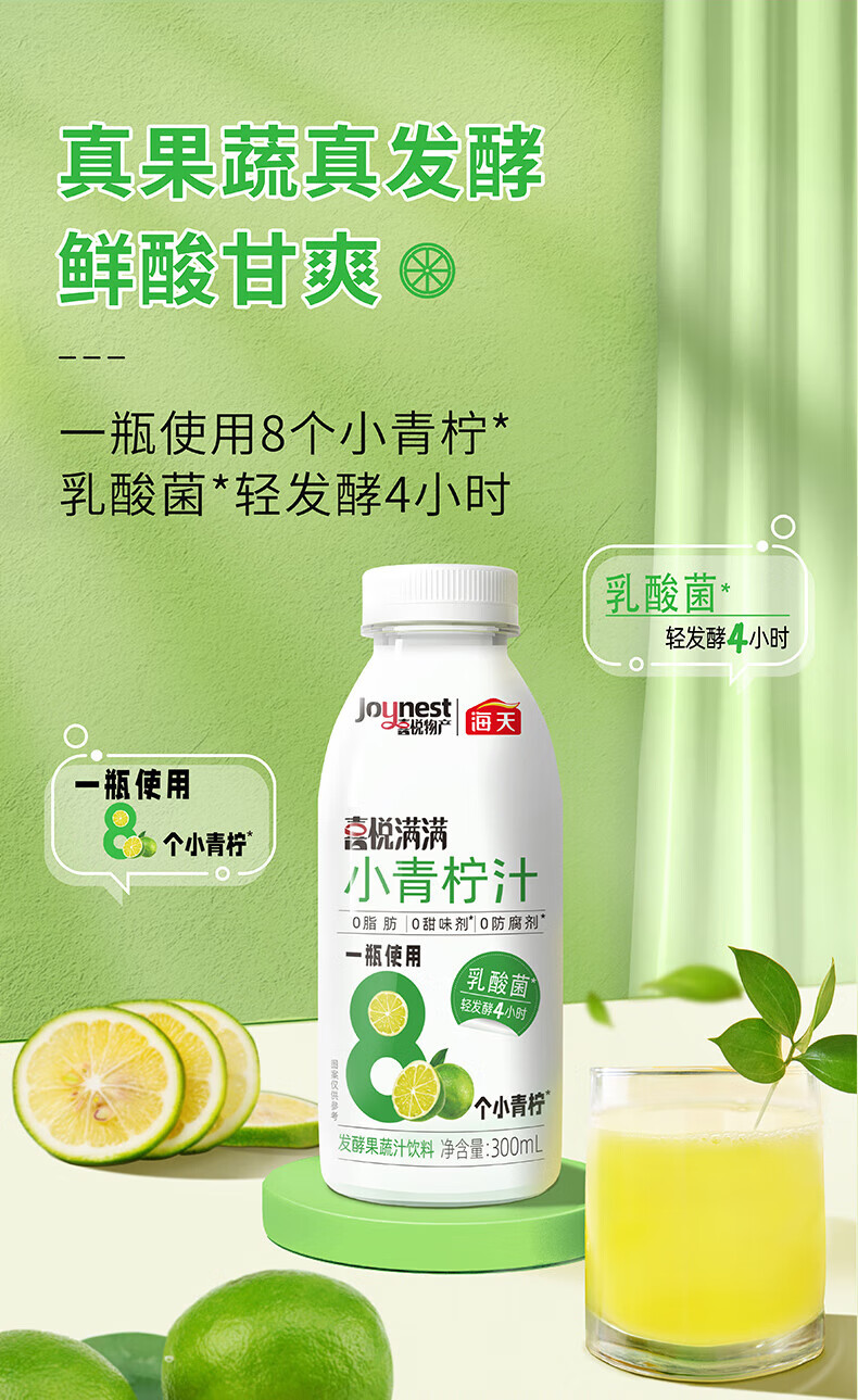 商品名称:海天饮料 小青柠汁300ml*6瓶 0脂轻食 0添加防腐剂 发酵果蔬复合饮料