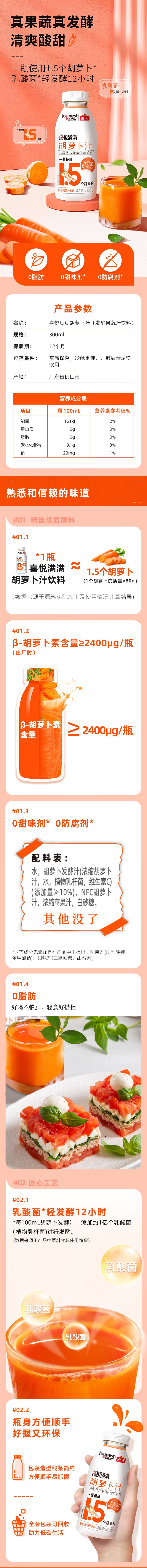 商品名称:海天饮料 胡萝卜汁300ml*15瓶 0脂肪轻食 0添加防腐剂 发酵果蔬饮料 胡萝卜汁