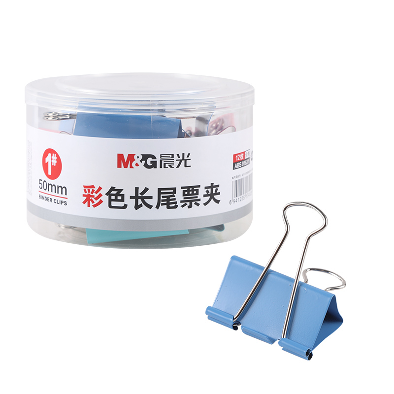商品名称:晨光(M&G)文具1#50mm 12只/罐 开学必备彩色长尾夹 大号金属票据夹 经济型办公燕尾夹 ABS916J1 单位:盒