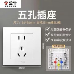 公牛 开关插座86型暗装一开五孔USB五孔16A墙壁面板单开双控家用白 正五孔 单位:个