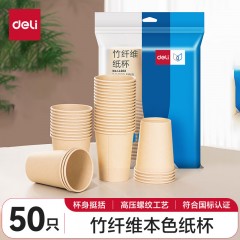 得力(deli)228ml一次性纸杯 竹纤维本色纸加厚杯子/水杯 50只装 LL202 单位:袋