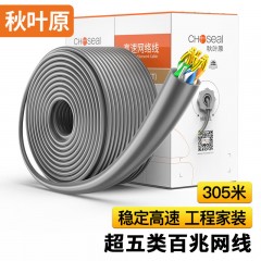 秋叶原(CHOSEAL)原装超五类网线【工程版】CAT5e纯铜线芯综合布线POE供电非屏蔽网络线灰色305米QS2608AT305S 单位:箱