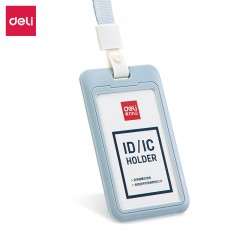 得力(deli)-64832-皮质PU工作证胸牌卡套-带涤纶挂绳-蓝色-单位:套-起订量10套
