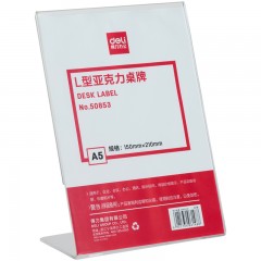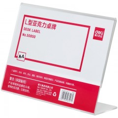 得力 50853L型亚克力桌牌二维码牌子展示牌会议名称标价格牌桌签牌
