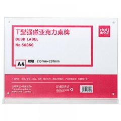得力 A4强磁T型台签亚克力水晶台签展示牌强磁台卡牌酒店会议桌牌50857