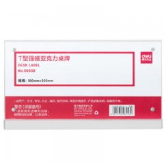 得力50857T型强磁亚克力桌牌(透明)(单位:只)