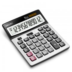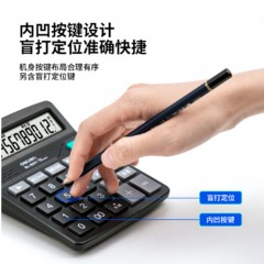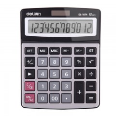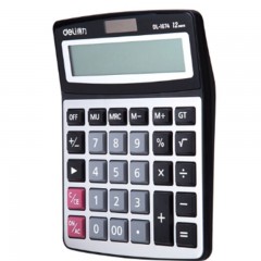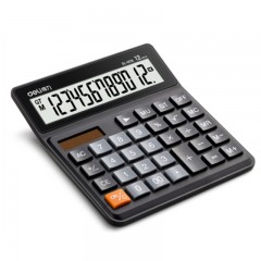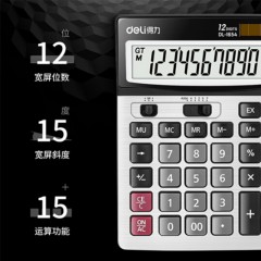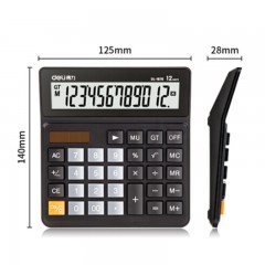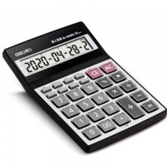 得力(deli)-1676 -双电源桌面计算器-12位宽屏财务计算器-黑色-单位:个