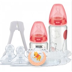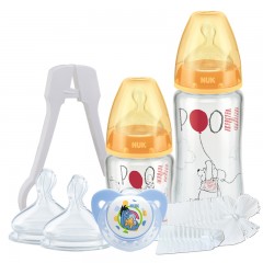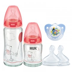 NUK 迪士尼小熊维尼宽口径玻璃奶瓶奶嘴安抚奶嘴奶瓶夹奶瓶刷6件套