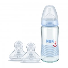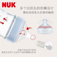 NUK 自然母感宽口玻璃奶瓶奶嘴3件套0-6个月初生婴儿奶瓶套装