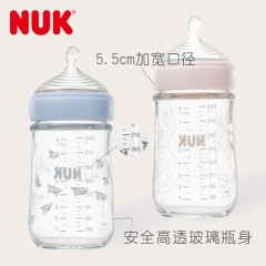 NUK 自然母感宽口玻璃奶瓶240ml120ml中号初生型两件套装