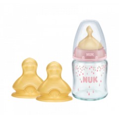 NUK 宽口径120ml玻璃奶瓶+1号(0-6个月小圆孔)乳胶奶嘴套装