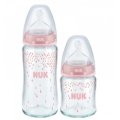 NUK 宽口径玻璃奶瓶240ml/120ml+(0-6个月小圆孔)硅胶奶嘴套装