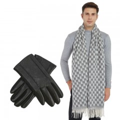 艾丝雅兰 A-ZH2019 尊尚围巾手套套装 男:中灰围巾+黑色手套 单位:套