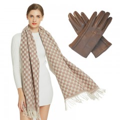 艾丝雅兰 A-ZH2008 精品围巾手套套装 卡其色围巾+卡其色手套 单位:套