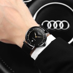 冠琴 手表男士超薄真皮钢带石英表 情侣时尚女表防水夜光男表