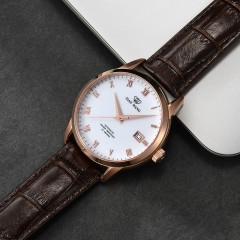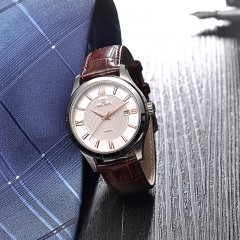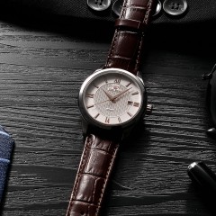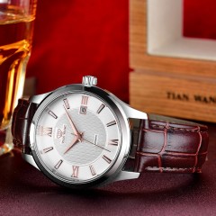 天王表 防水自动机械表 时尚真皮带男士手表GS5918