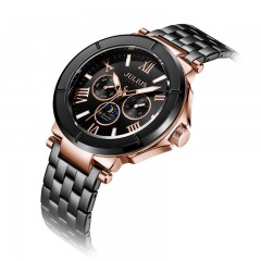 聚利时 新款男表多功能星期日历月相夜光大表盘钢带手表JAH-102