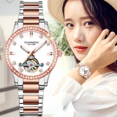 冠琴 手表女士机械表新款手表全自动镂空防水时尚镶钻女表