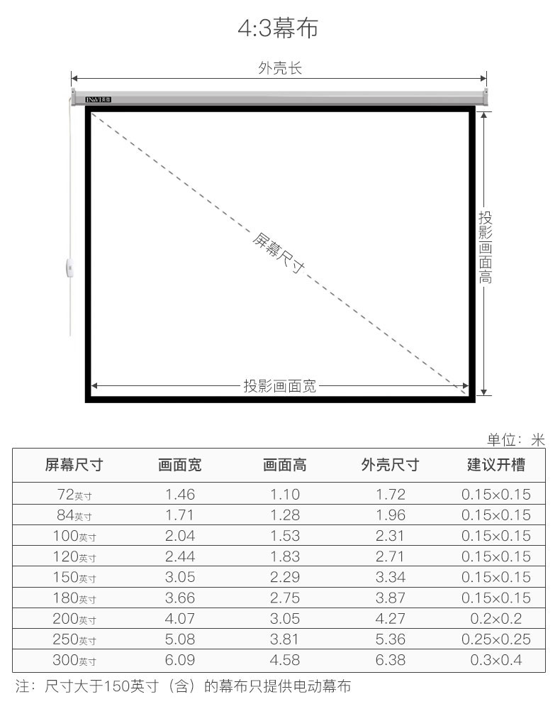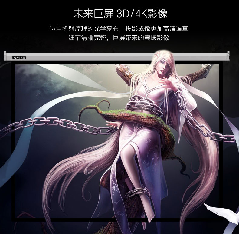 IN&VI/英微 投影仪幕布4:3高清玻纤电动幕布带遥控 BQD