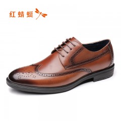 红蜻蜓 男鞋春季商务正装英伦布洛克男皮鞋子
