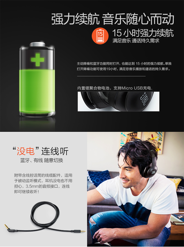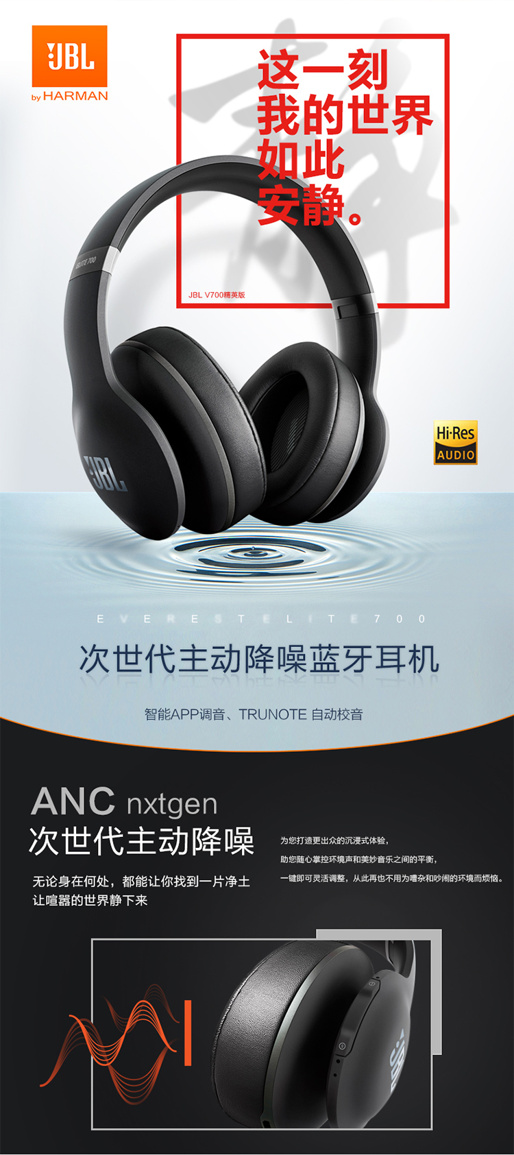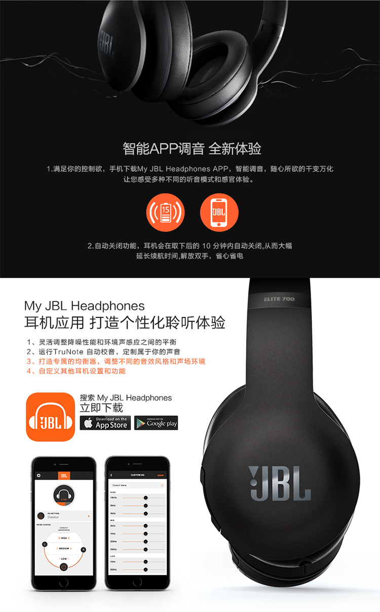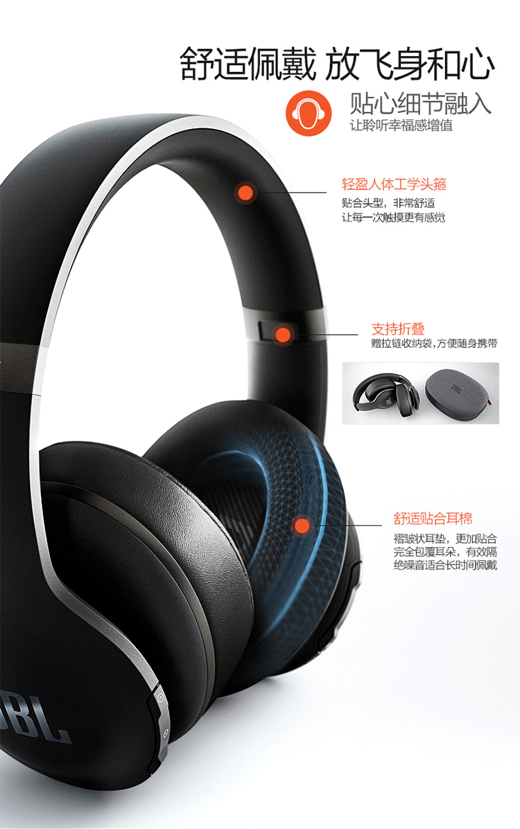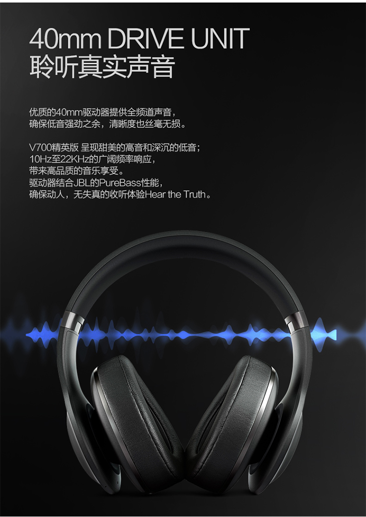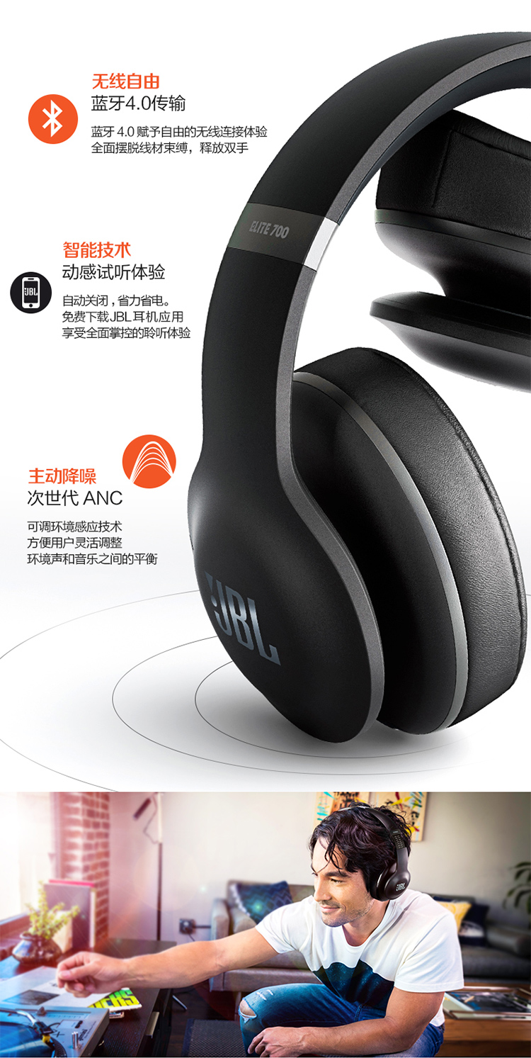 商品名称:JBL 精英版头戴包耳式蓝牙音乐耳机 主动降噪 智能APP调音 V700