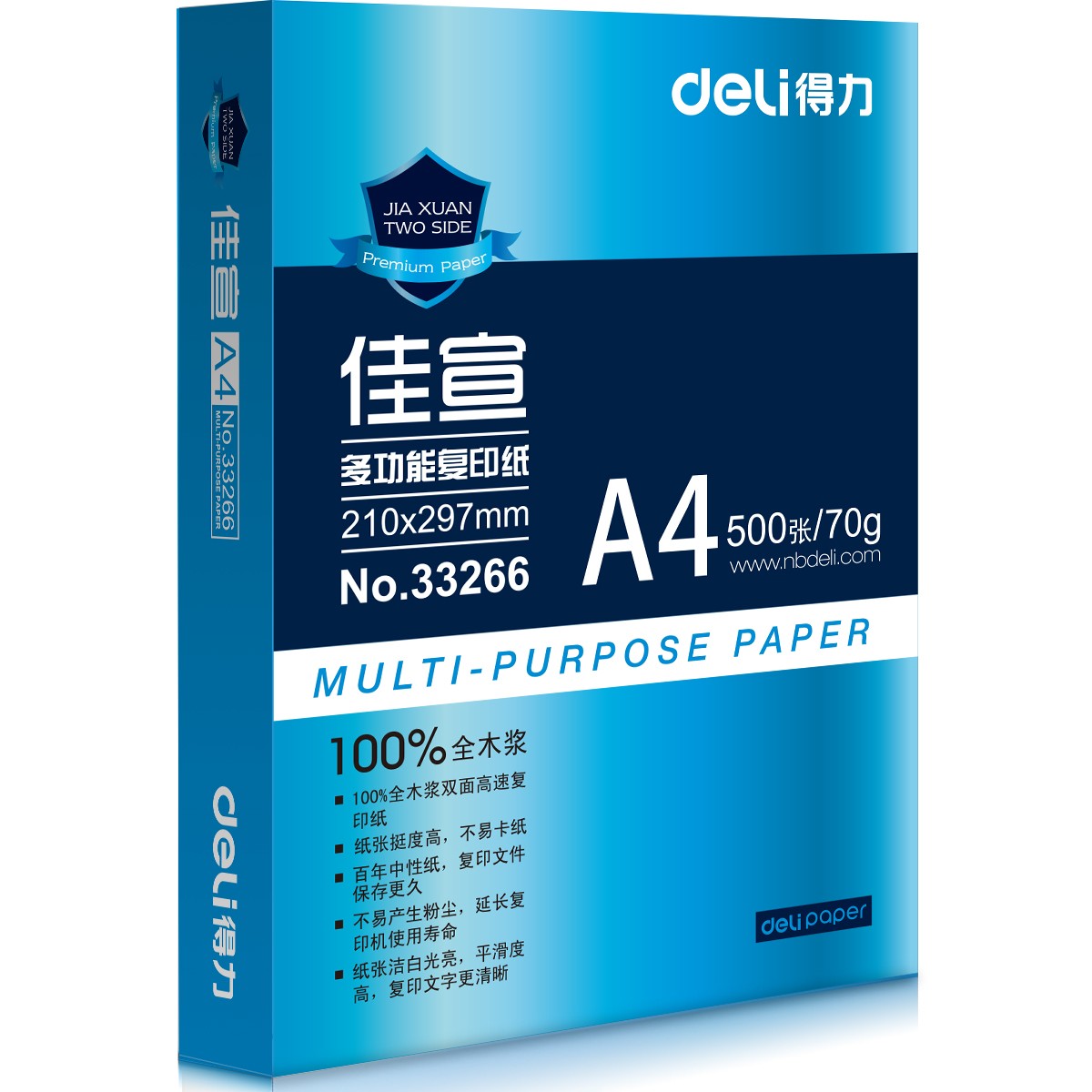商品名称:得力 A4复印纸 33267 得力佳宣电脑复印纸