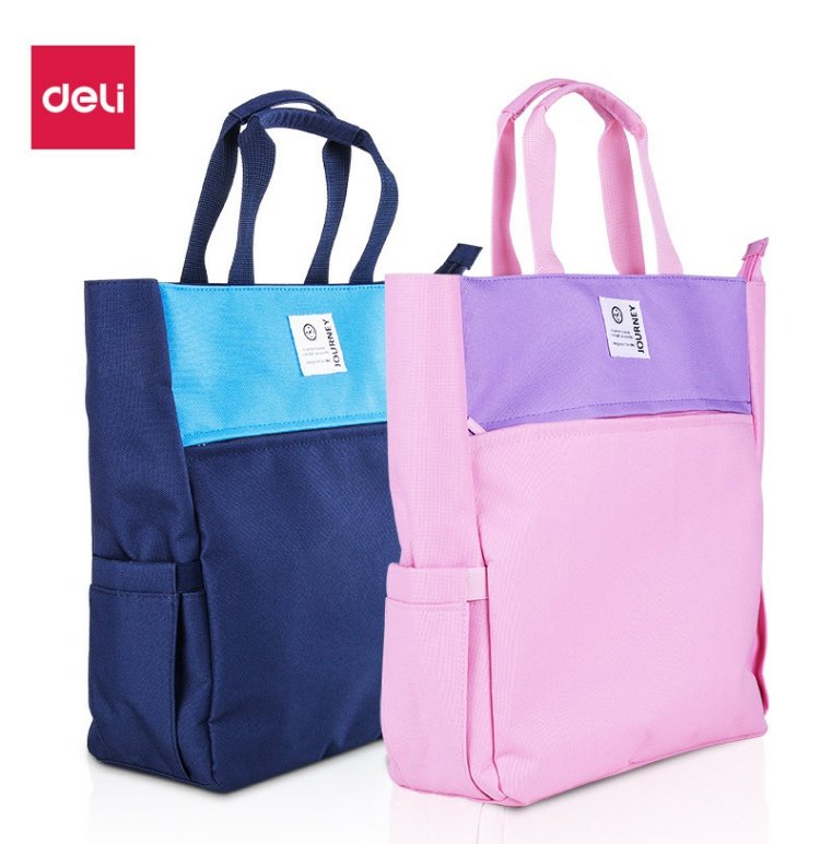 商品名称:得力 中小学生收纳大号手提袋拉链帆布手拎补课包文件作业美术补习袋资料袋拎书袋男学习儿童