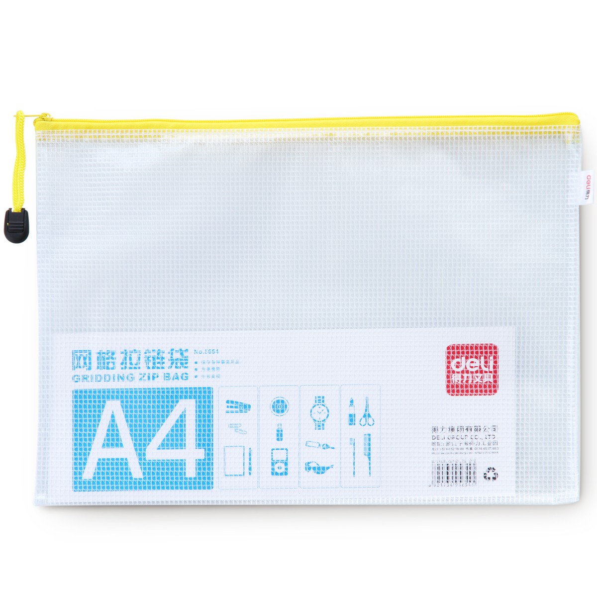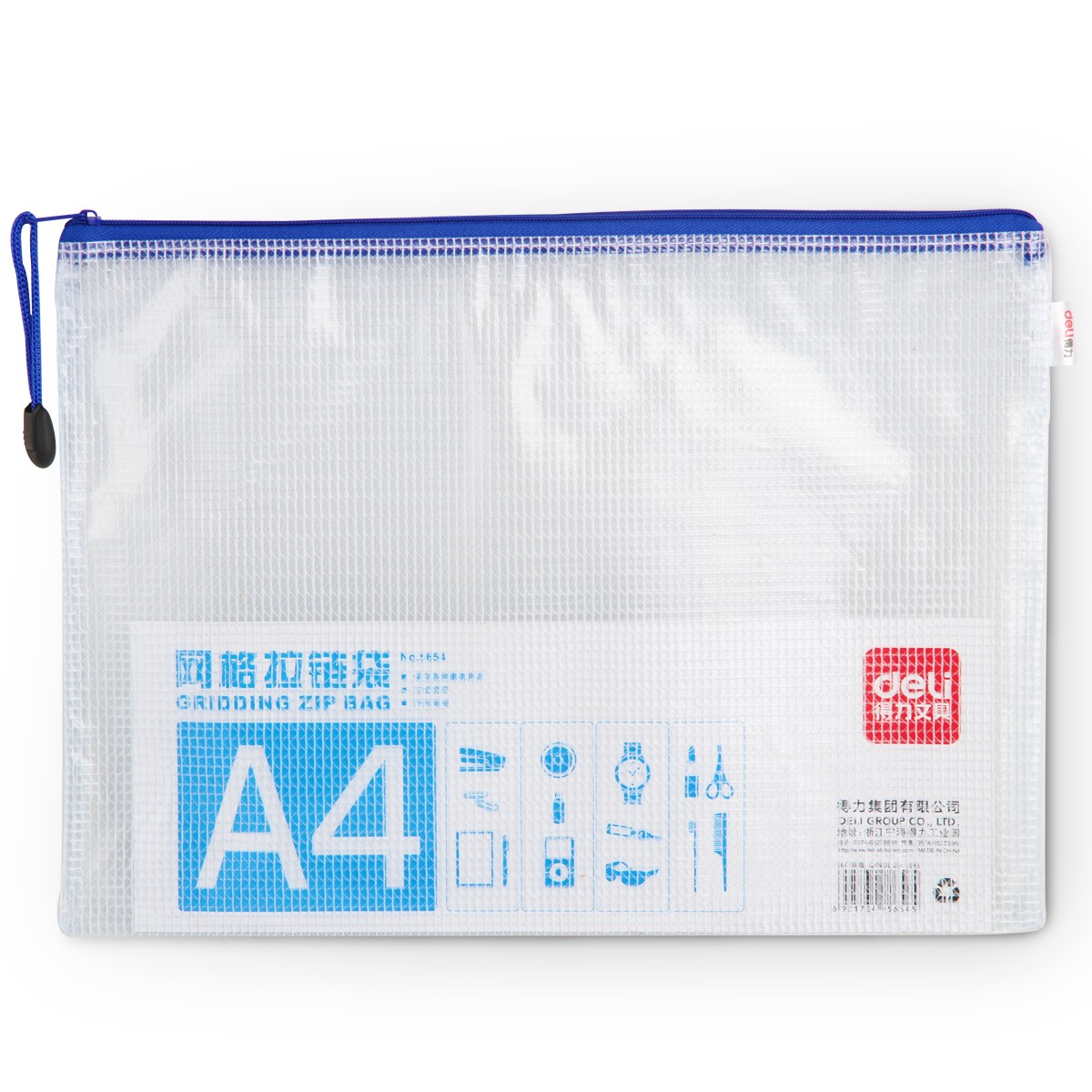 商品名称:得力 网格拉链袋得力5654文件袋网格袋收纳文具发票袋A4大小拉边袋
