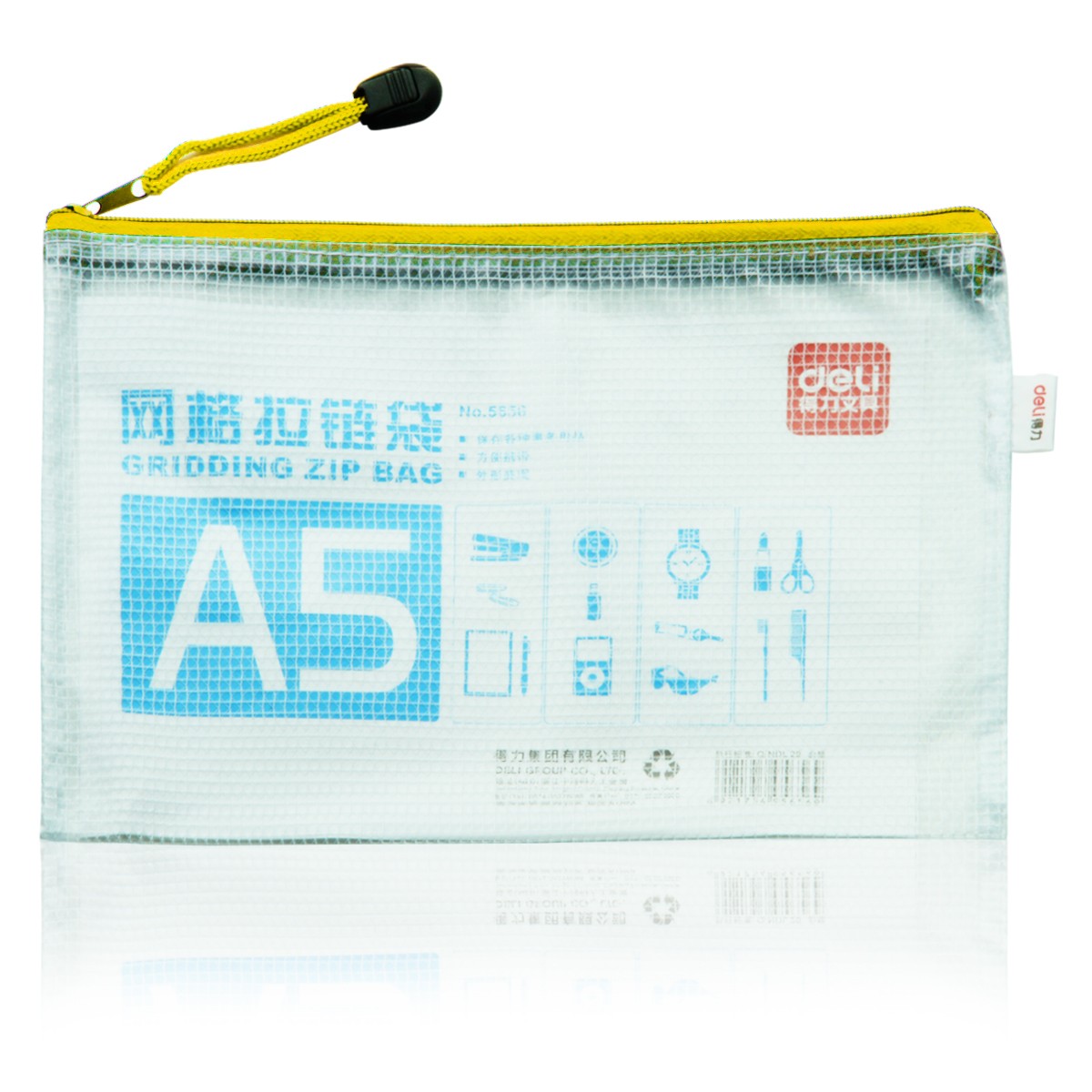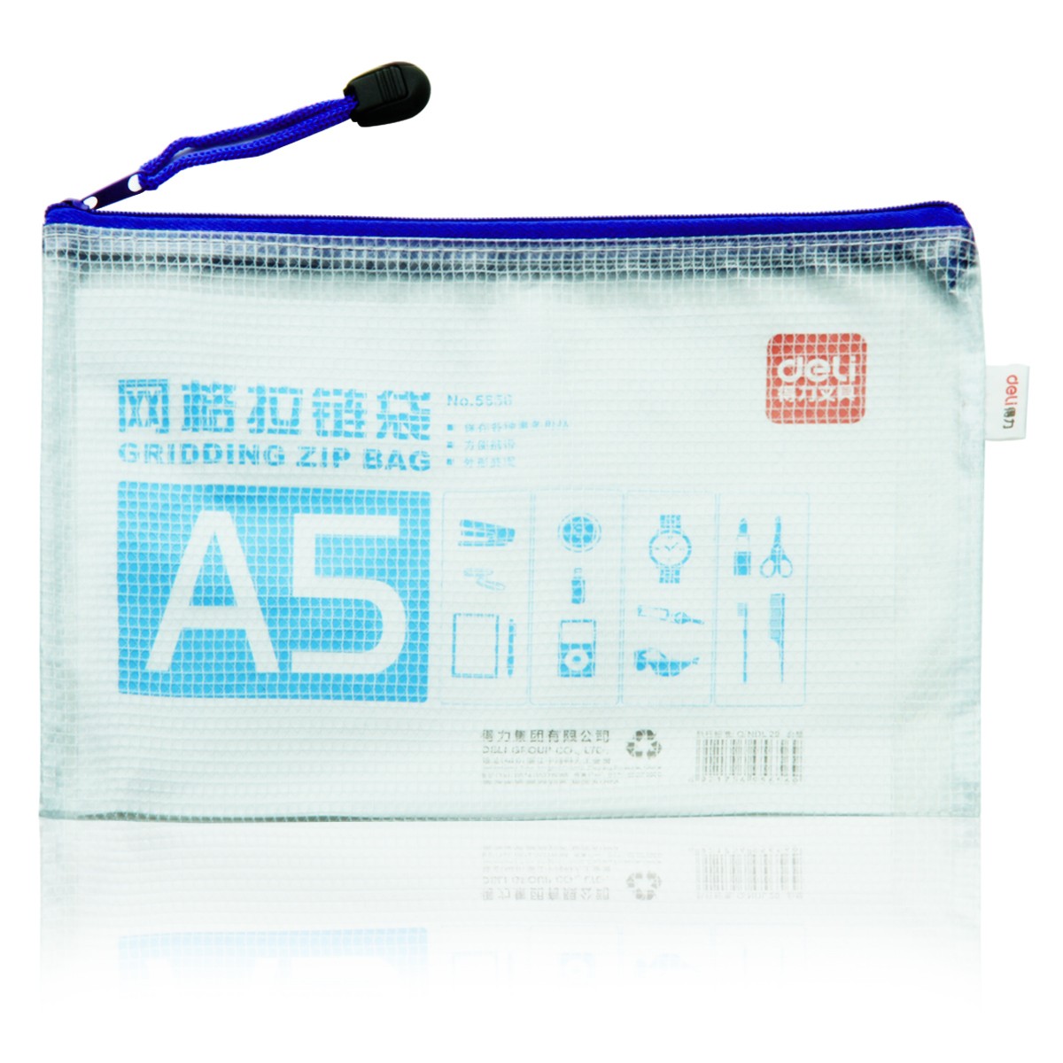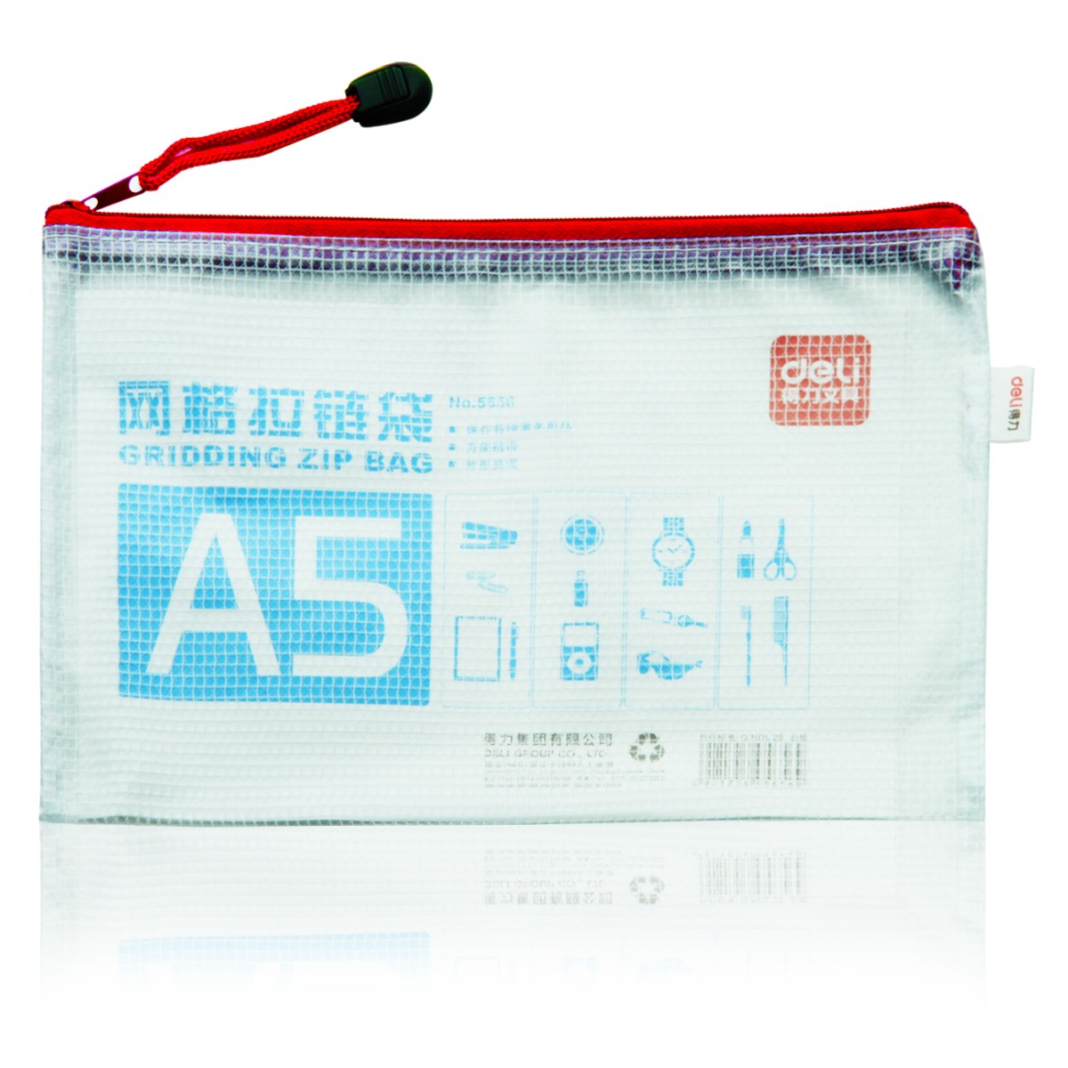 商品名称:得力 拉链袋5656文件袋透明塑料网格袋A5大小拉边袋资料袋