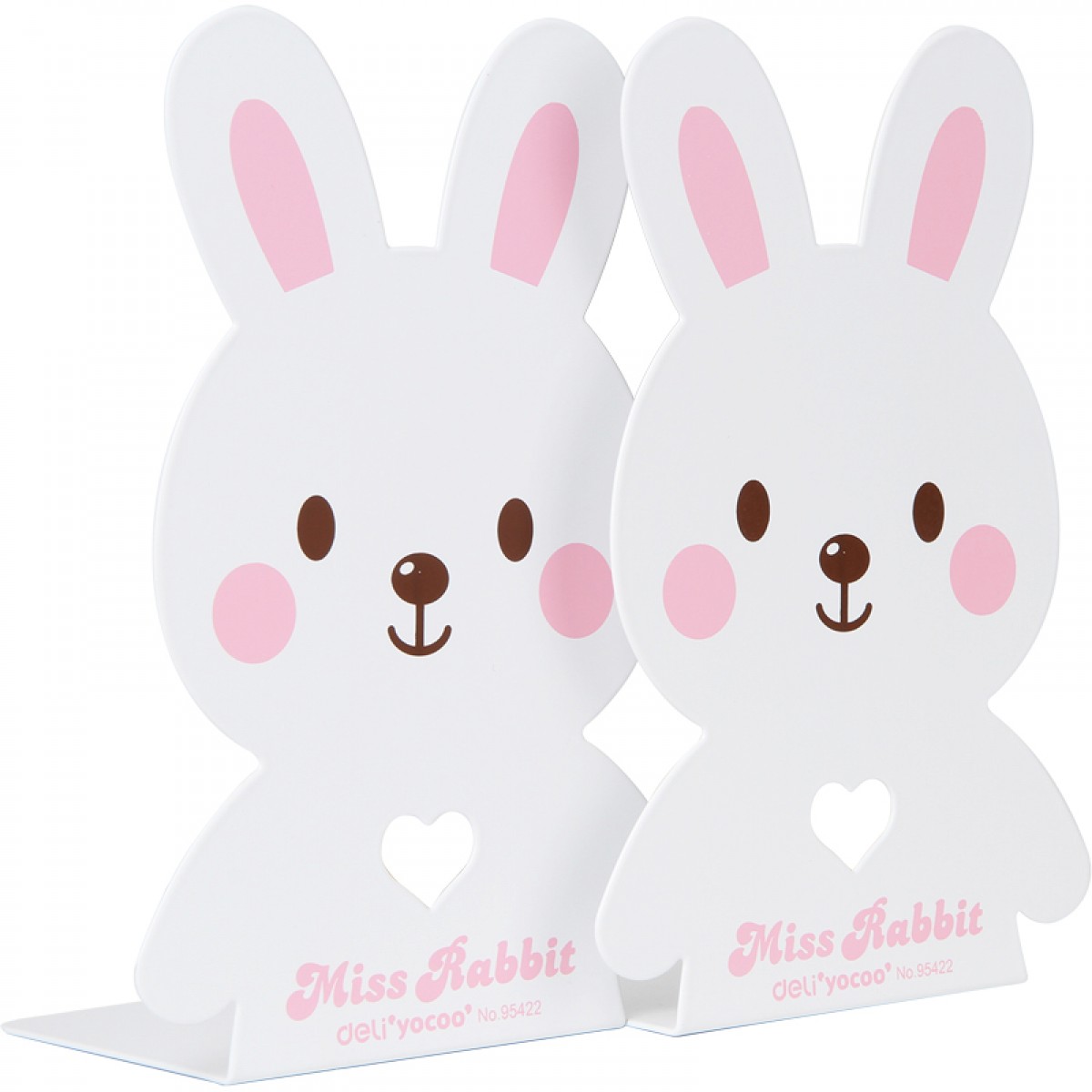 得力 书立95422 学生卡通创意小兔书夹 可爱白时尚金属 7寸 一对