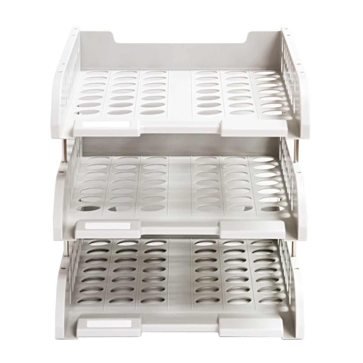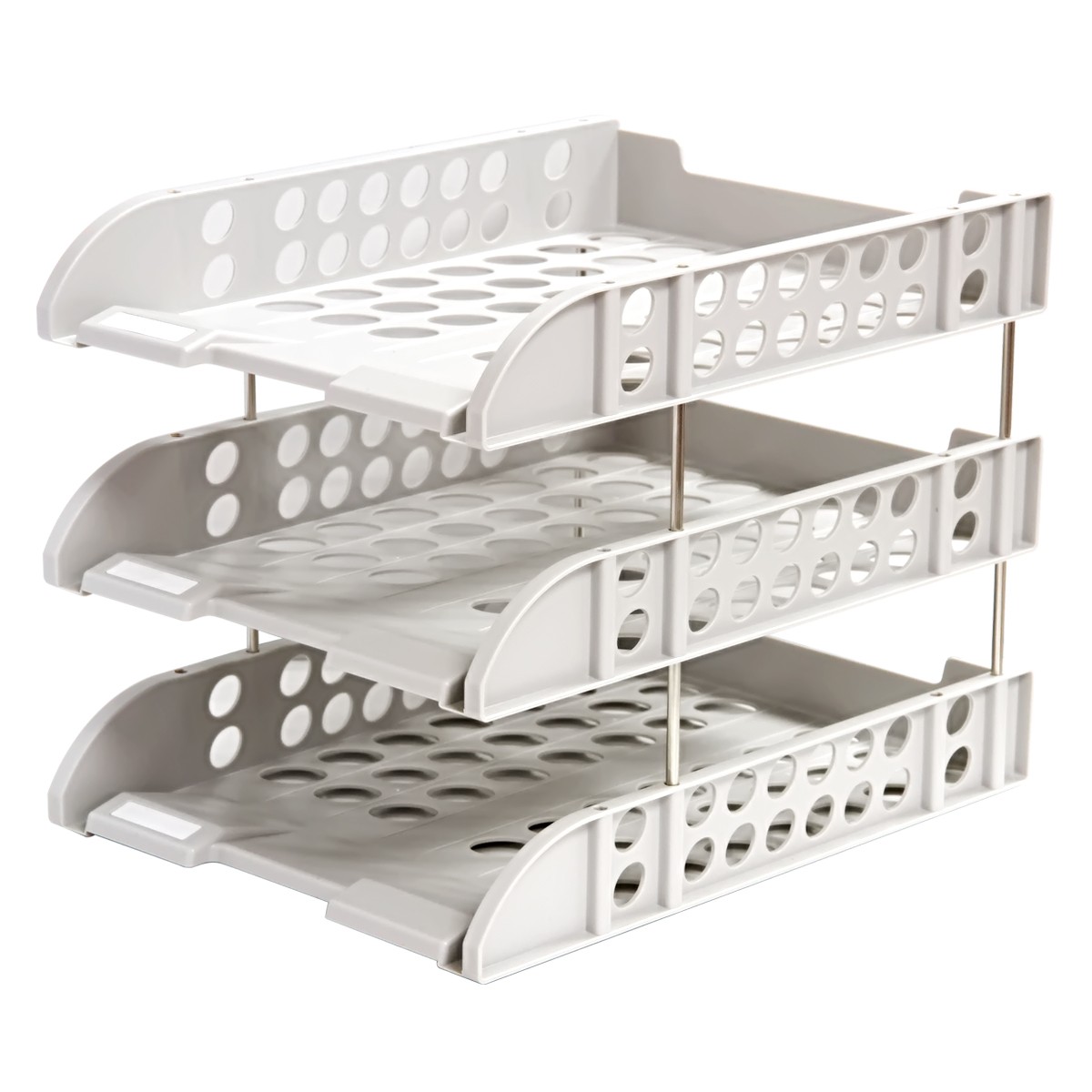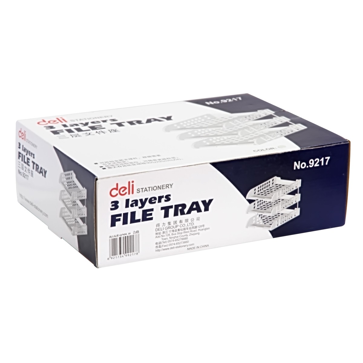 得力 9217三层商务文件座书架收纳盘金属支架桌面办公用品文件框