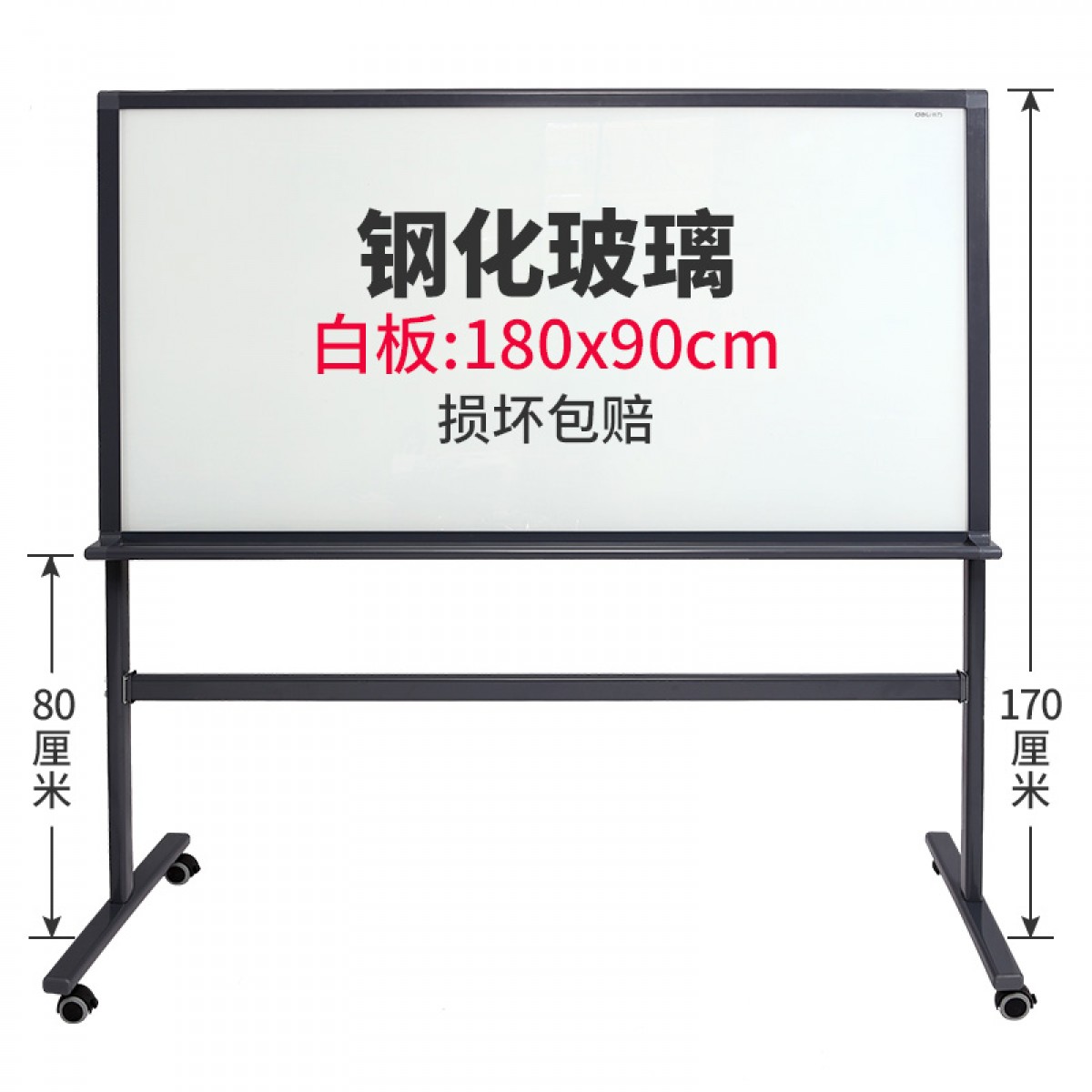 商品名称:得力 8739H型支架钢化玻璃单面白板写字板家教学办公黑板教学培训支架式磁性白板90cm*180cm