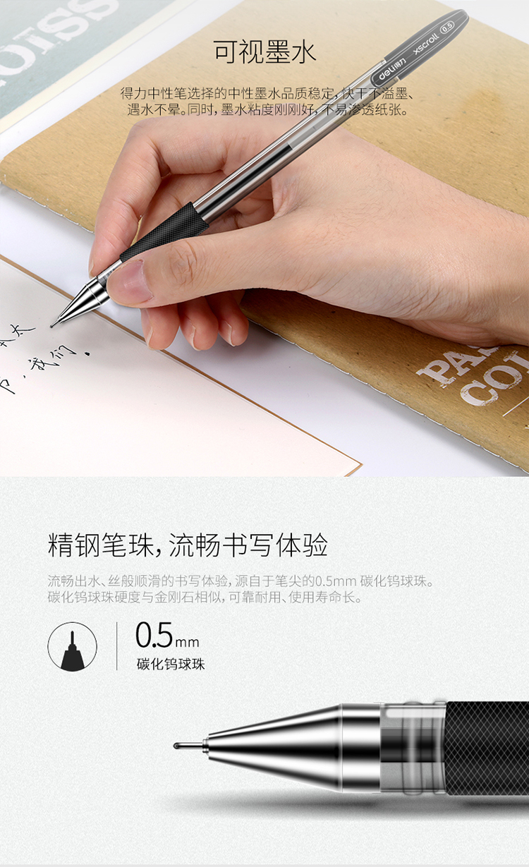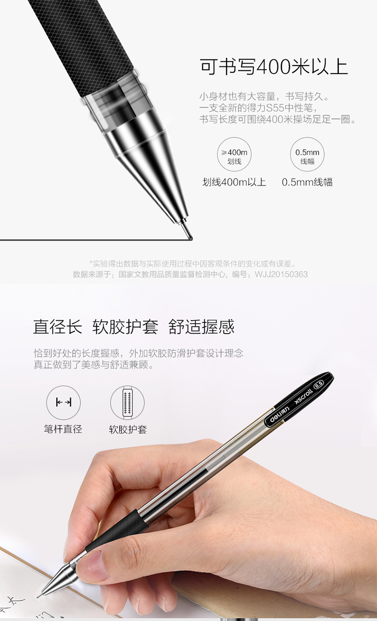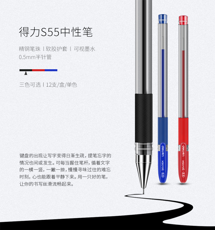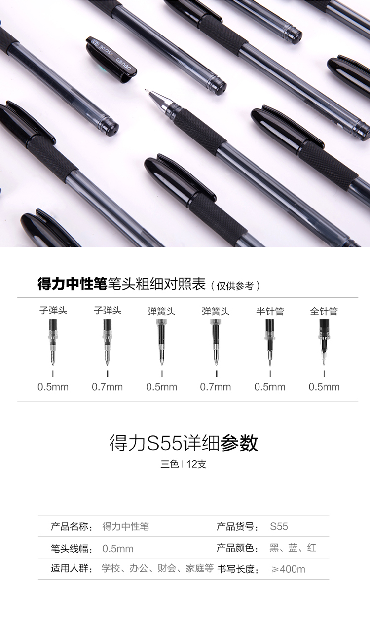 商品名称:得力 S55中性笔0.5mm半针管 经典办公水笔签字笔 12支/盒