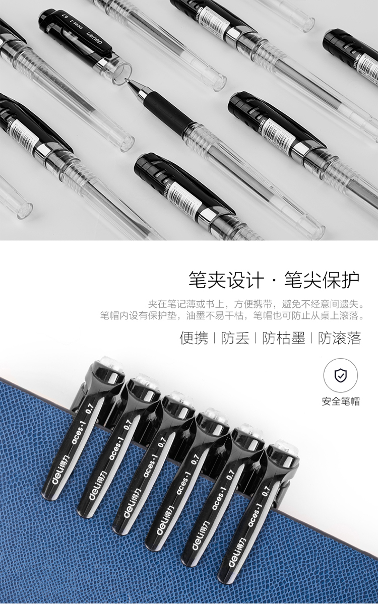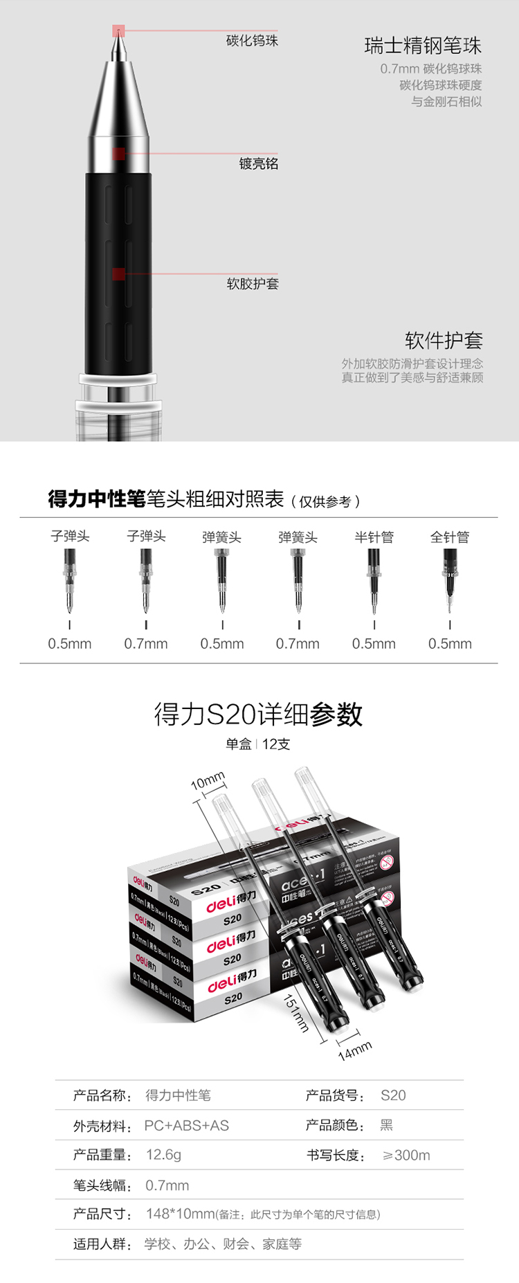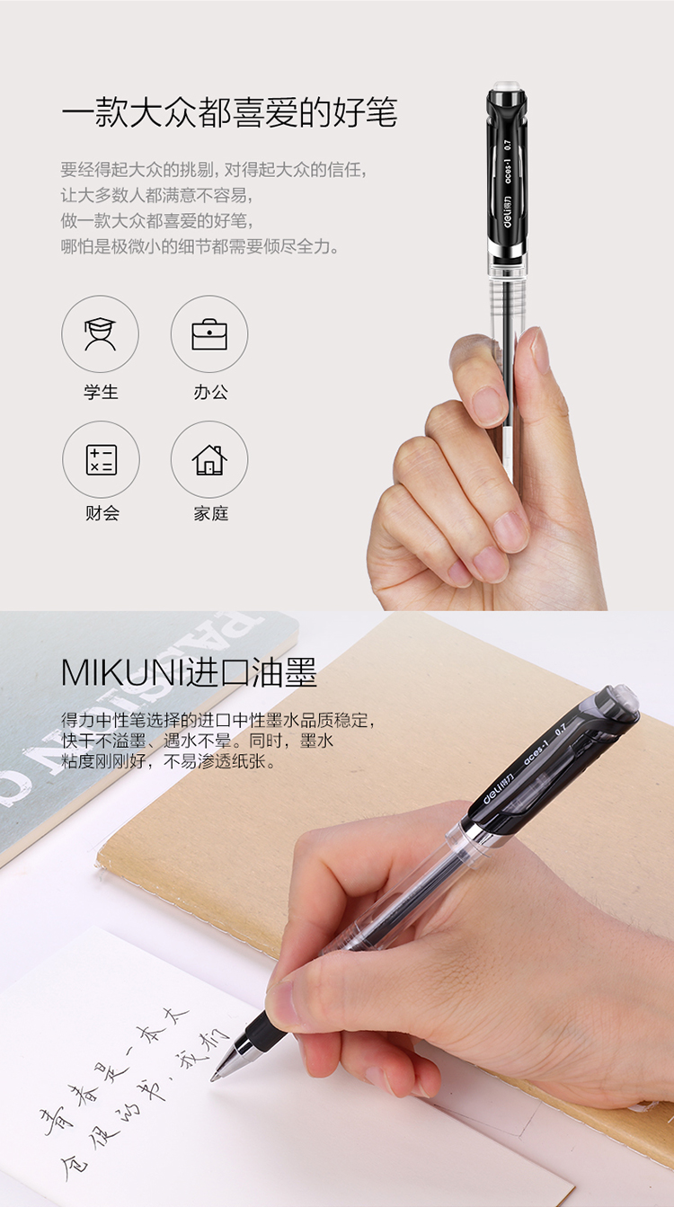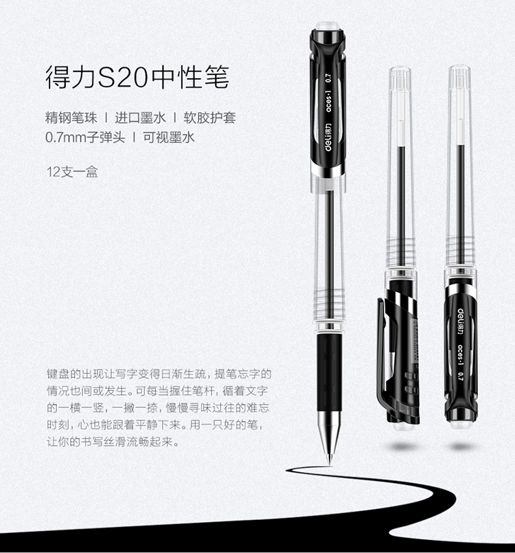 商品名称:得力 S20中性笔0.7mm子弹头 经典办公水笔签字笔 12支/盒