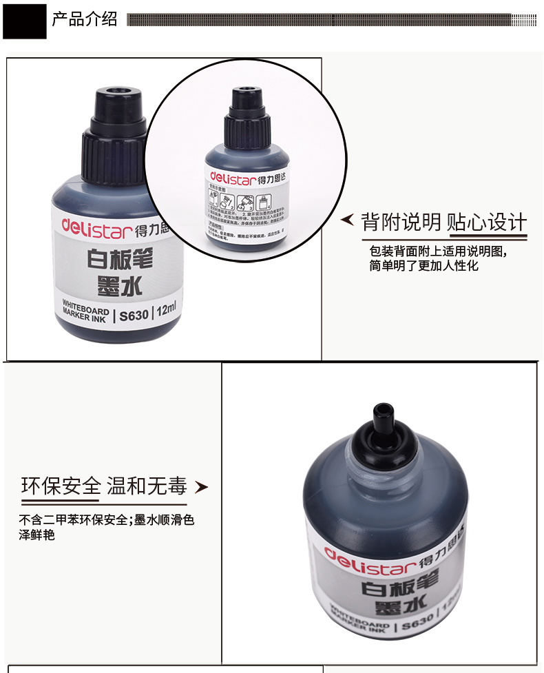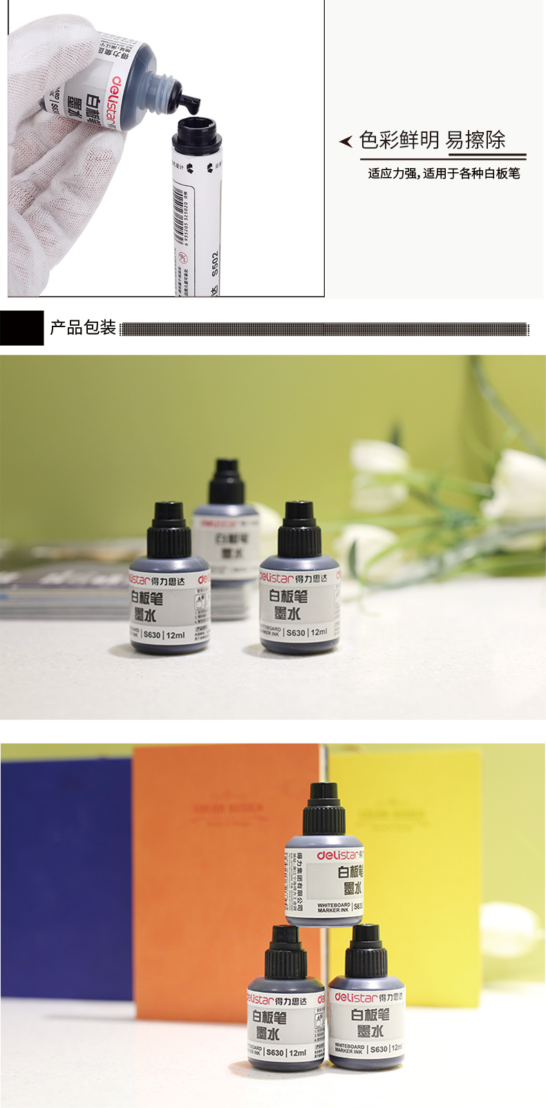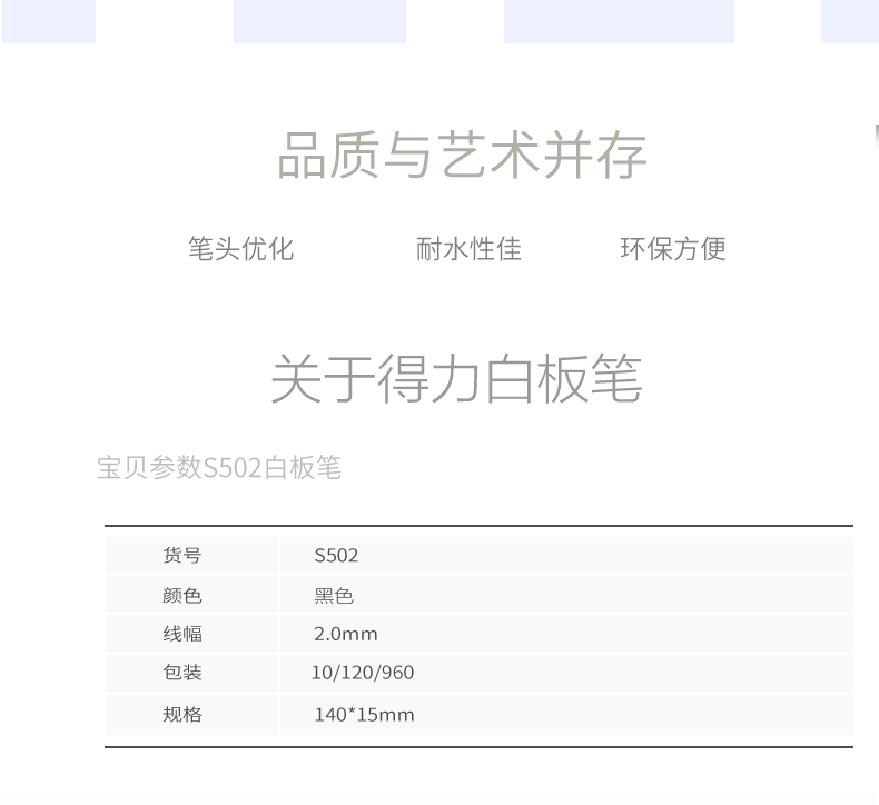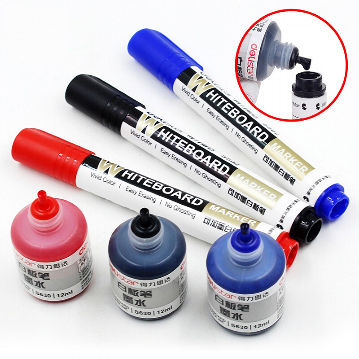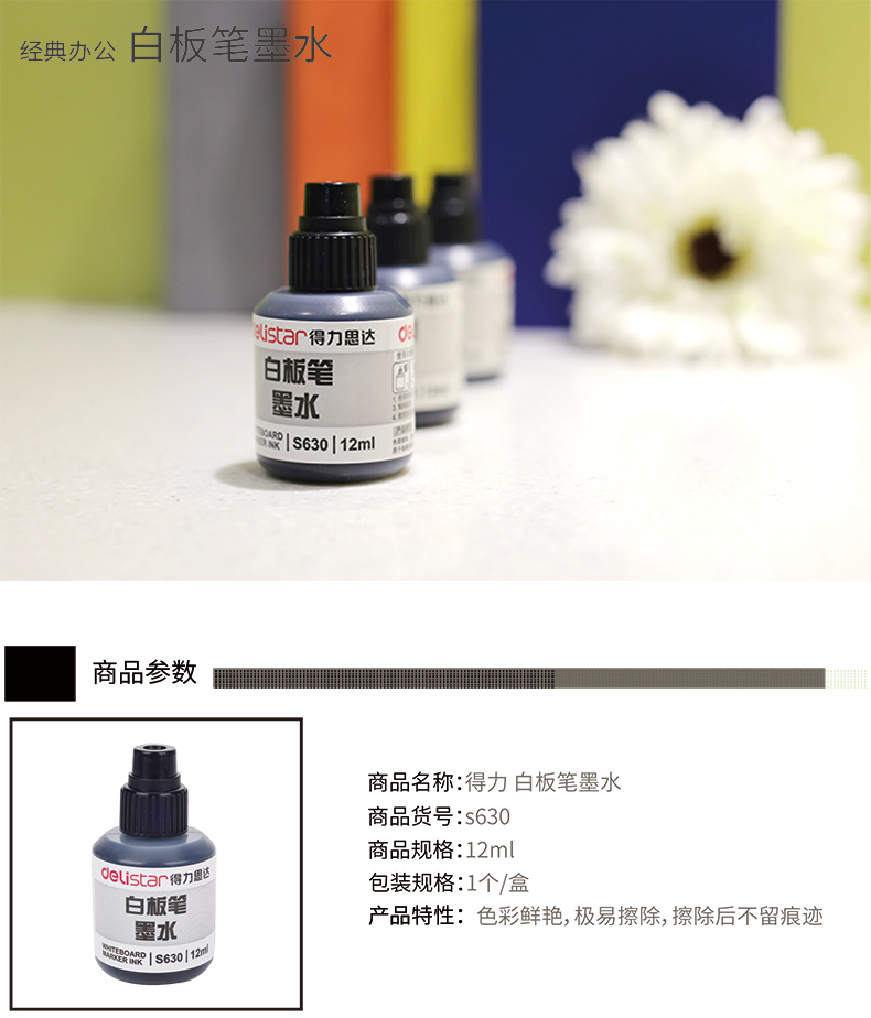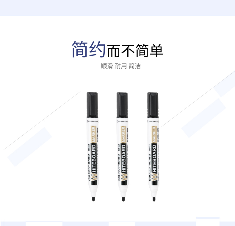 商品名称:得力 S502可加墨白板笔 色泽明亮可擦易擦白板笔 10支/盒