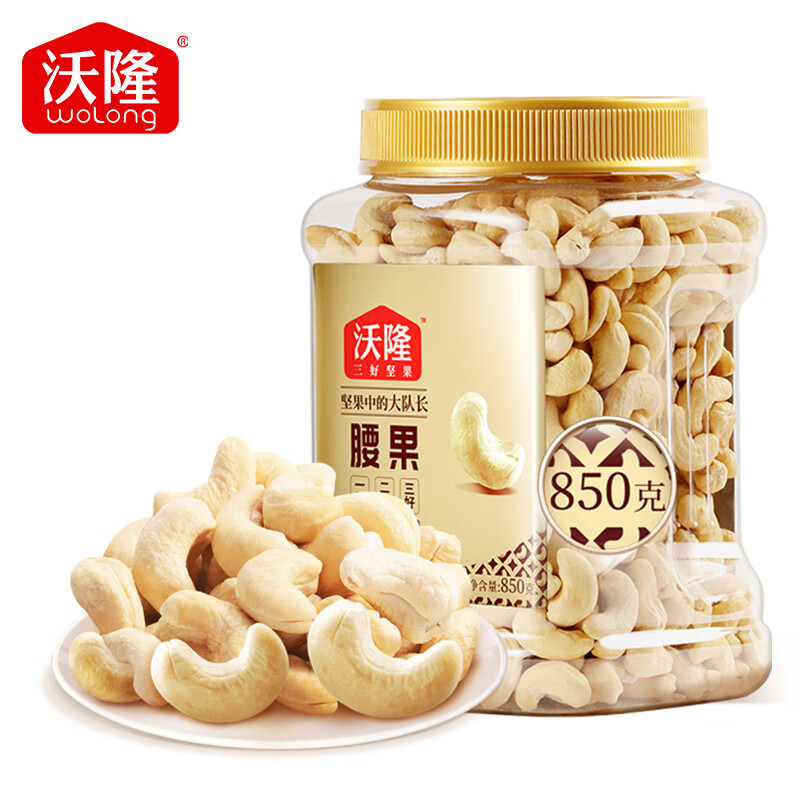 商品名称:沃隆 原味腰果850g罐装大腰果坚果炒货干果休闲零食特产 单位:罐