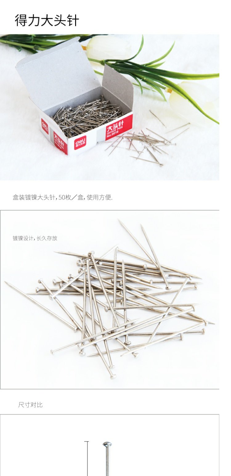 商品名称:得力 装订用品得力办公文具大头针0016珠光针固定针得力大头针