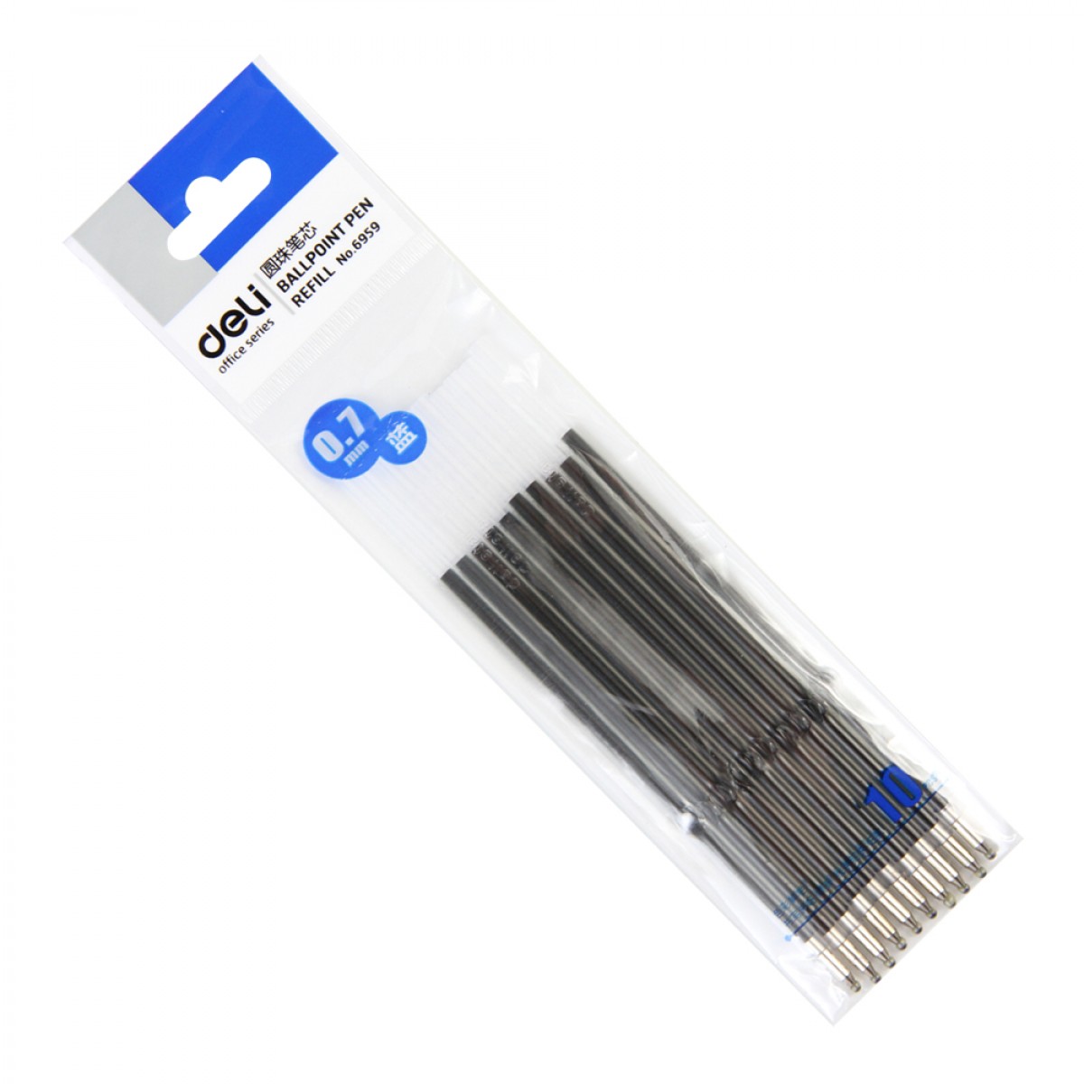 得力 6959掀动式圆珠笔笔芯替芯0.7mm蓝色圆珠笔芯办公学习替芯