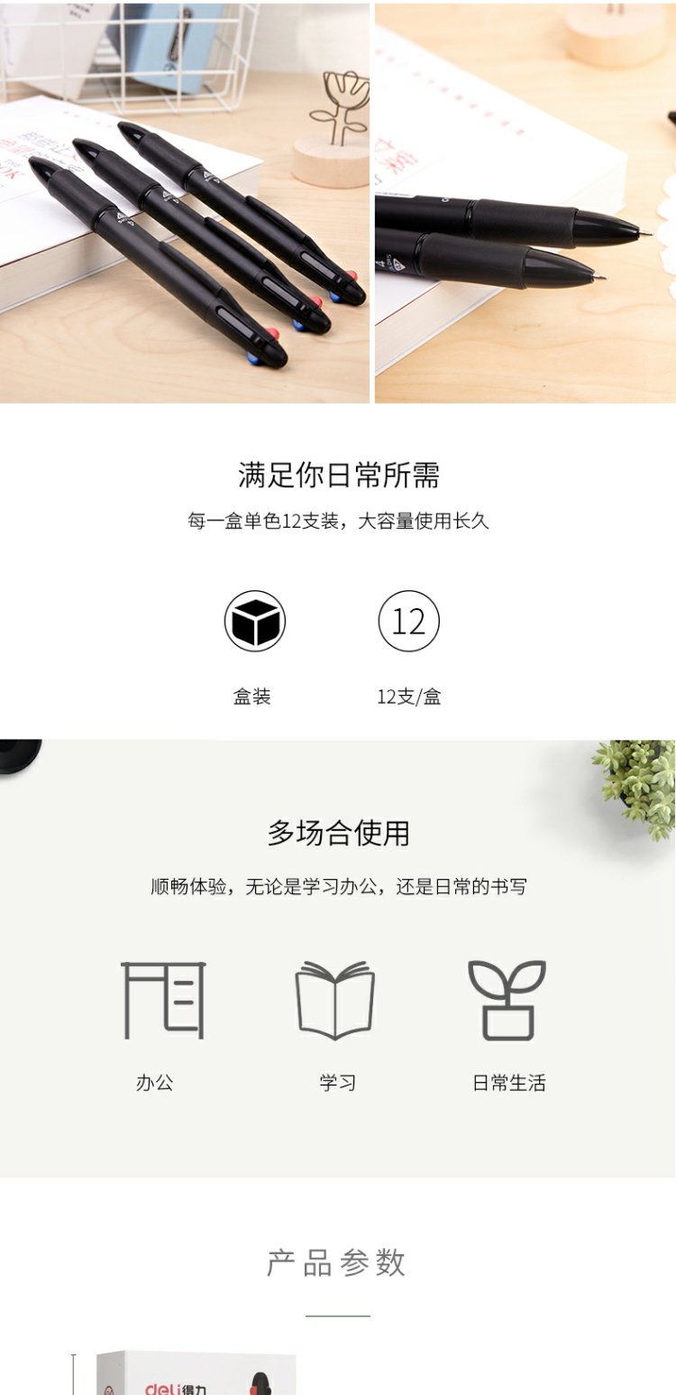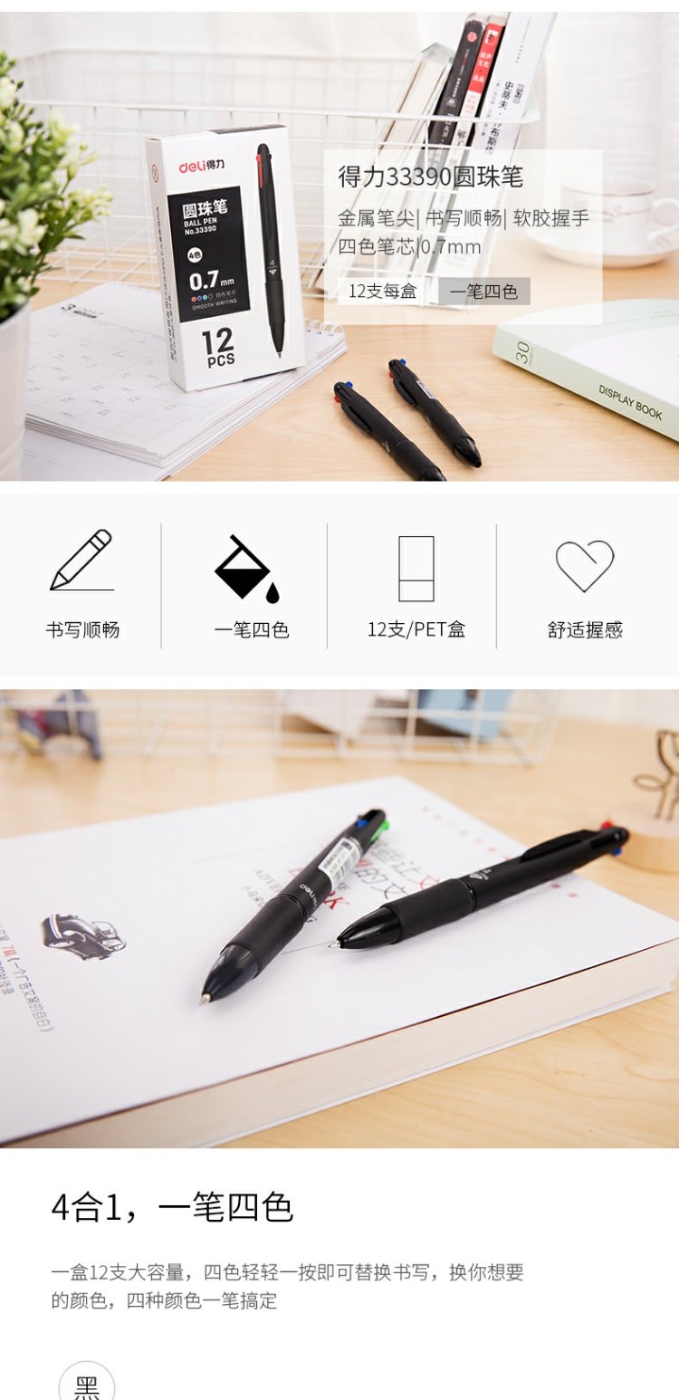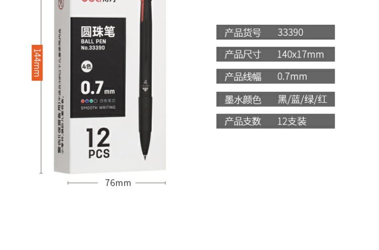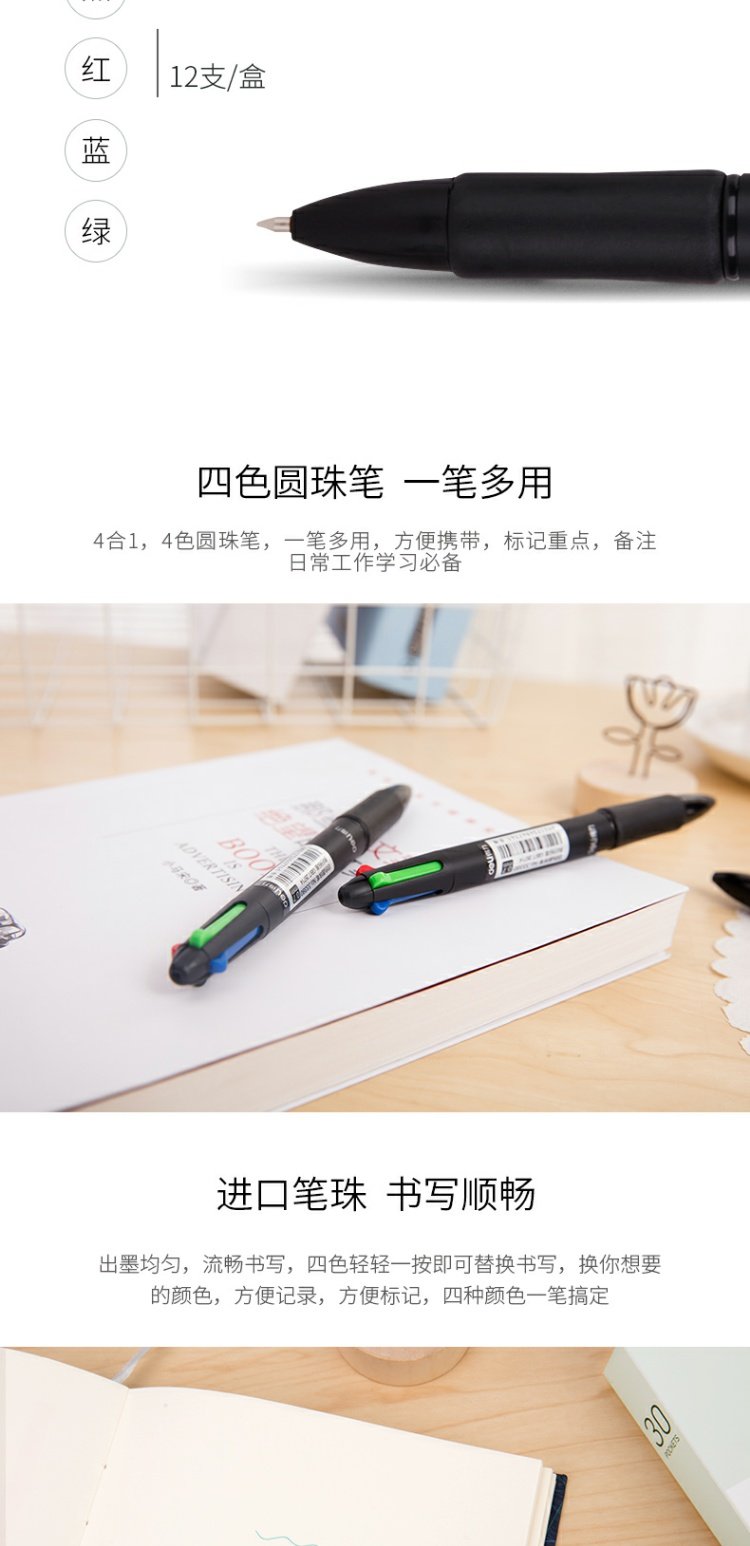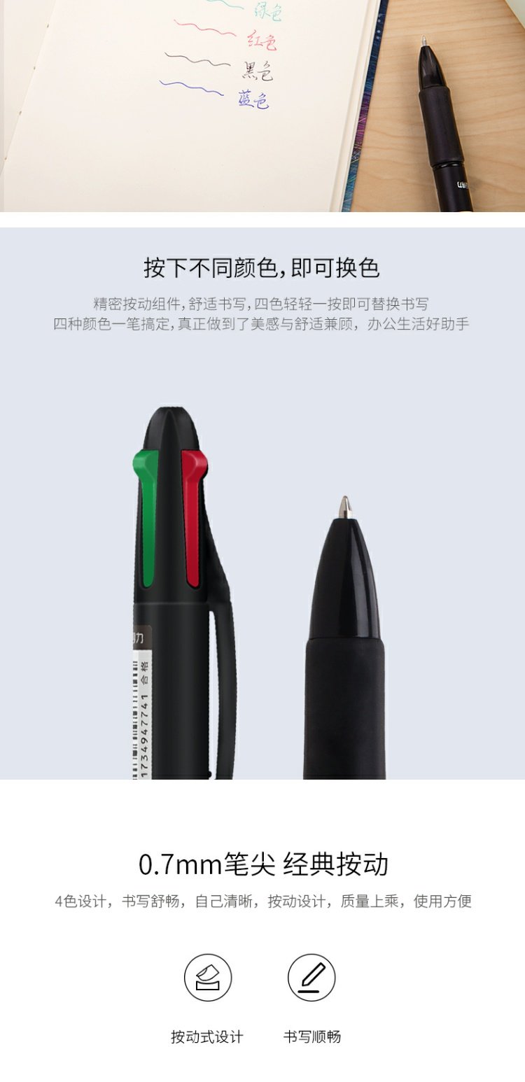 商品名称:得力 多色圆珠笔33390黑色绿色红色蓝色彩色四色圆珠笔原子笔