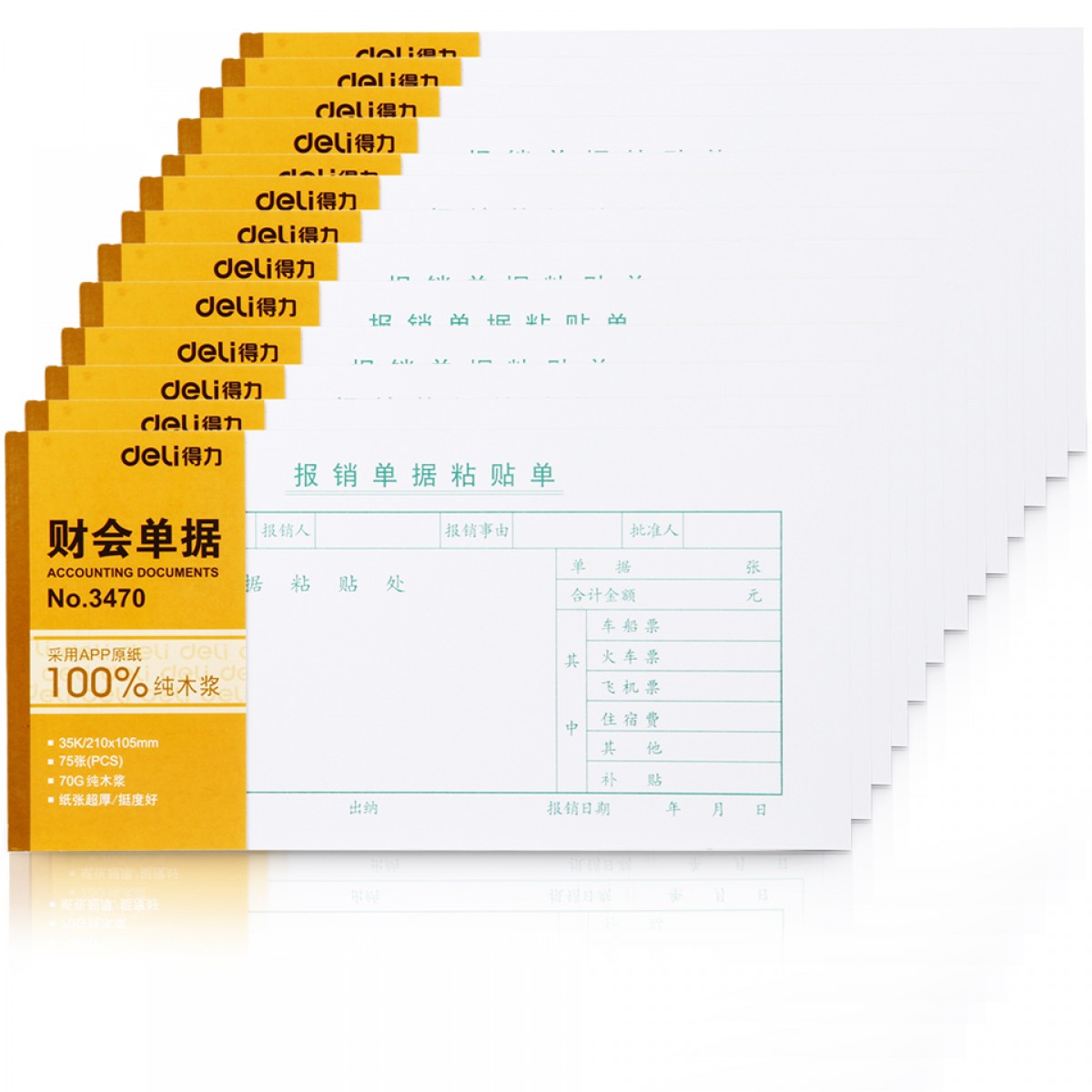 商品名称:得力 3470单据 35K(210*105mm) 报销单据粘贴单 财会单据