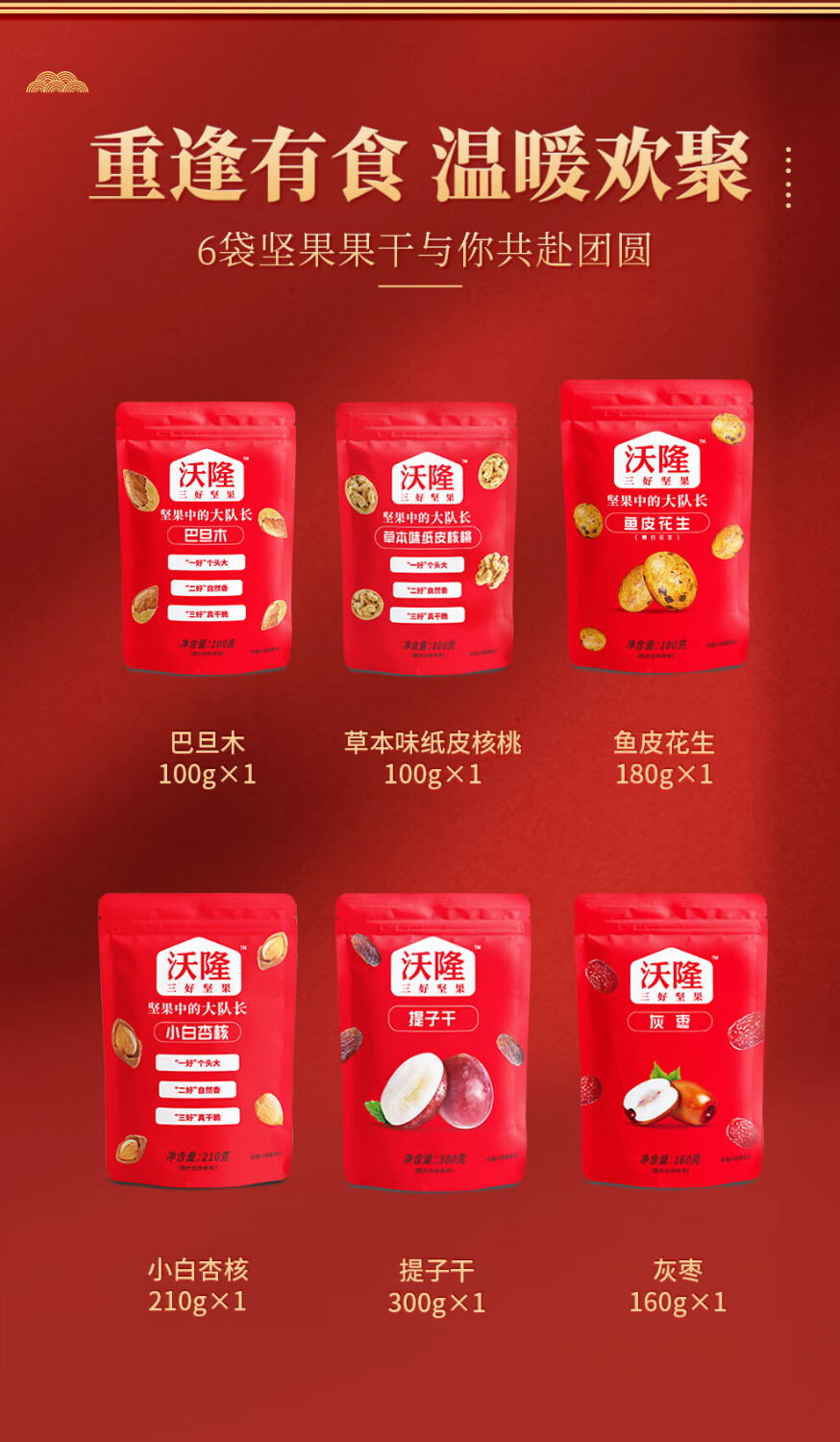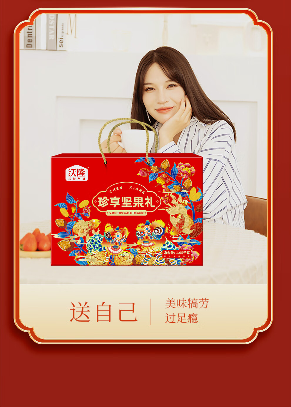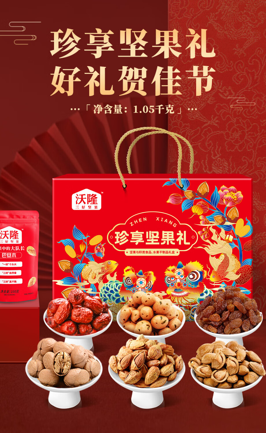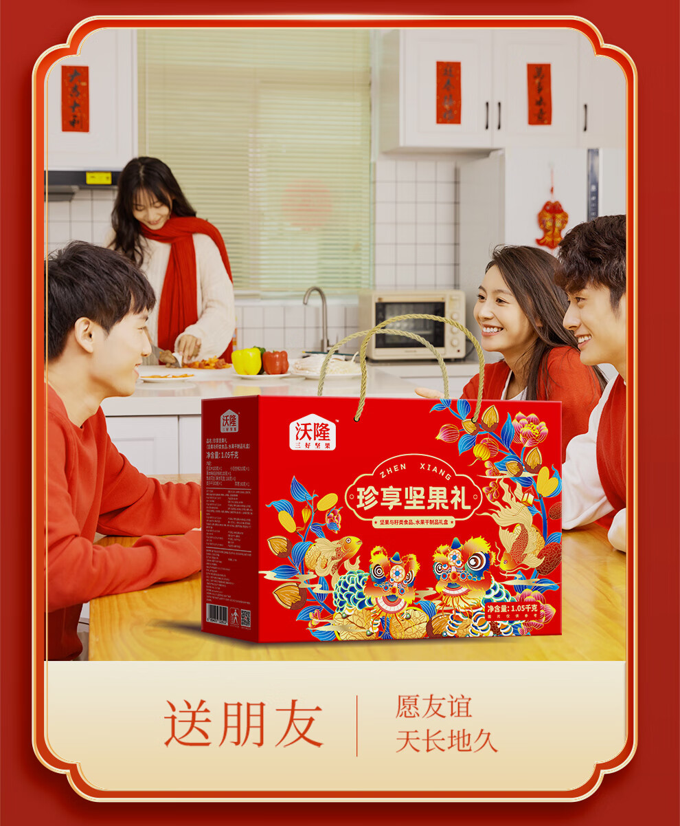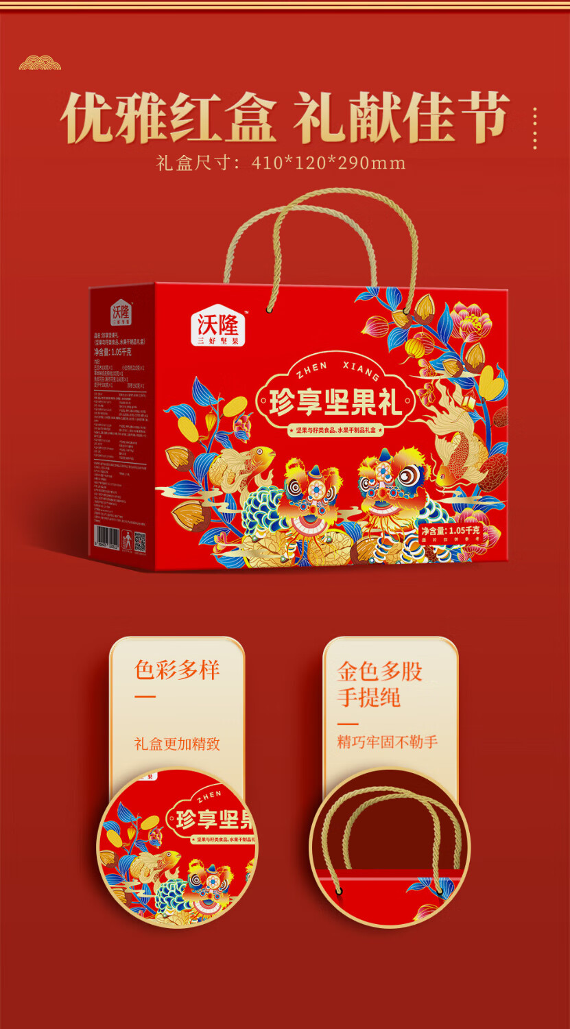 商品名称:沃隆 每日坚果休闲零食礼包混合坚果送礼礼盒 珍享坚果礼1050g 单位:盒