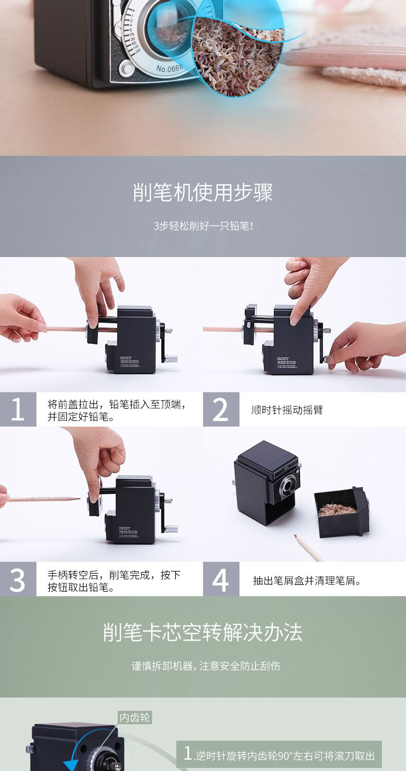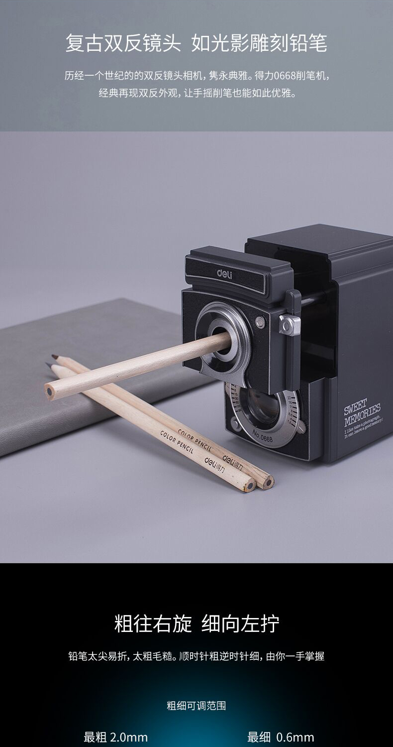 商品名称:得力 0668光影卷笔刀 手摇卷削笔器转笔刀铅笔刨可调粗细
