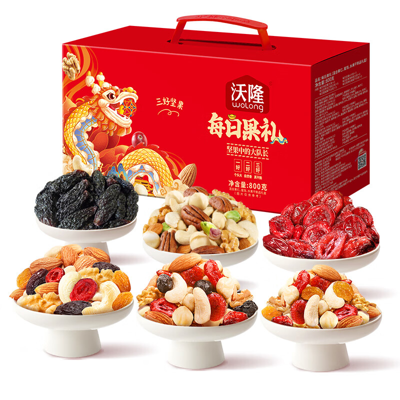 沃隆年货高端坚果干果礼盒 龙年春节零食大礼包过年新年必备送礼佳品 品质精选6罐装-富贵满满1.205kg 单位:盒