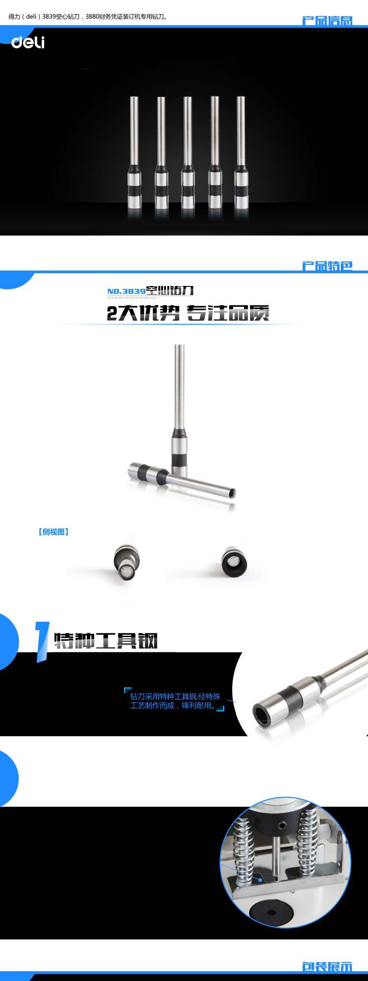 商品名称:得力 3880空心钻刀财务凭证装订机专用冲头3839优质钢刀锋利