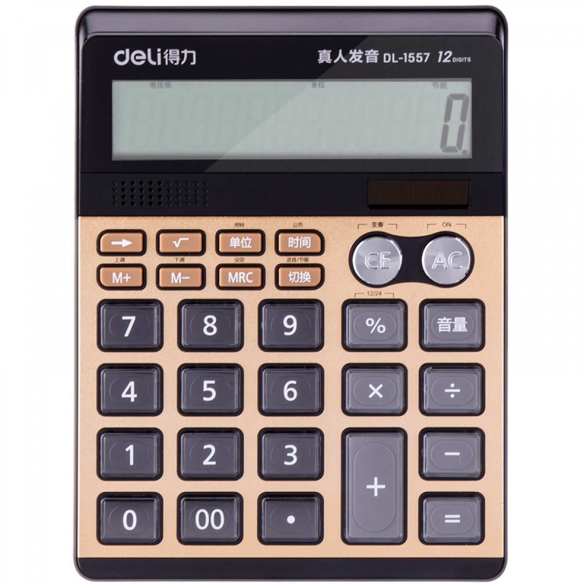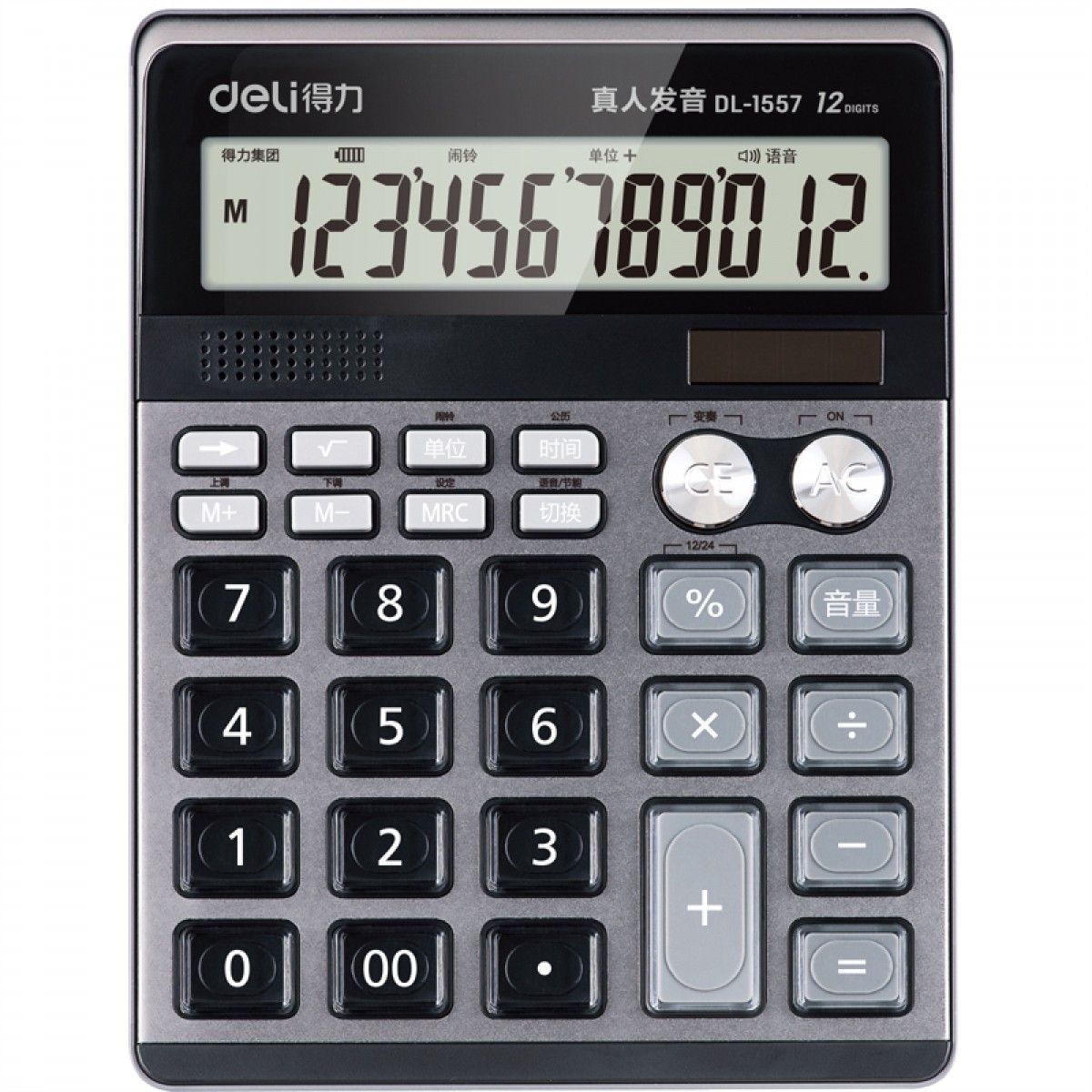 得力 1557双电源语音计算器太阳能语音计算机办公家用财务计算器